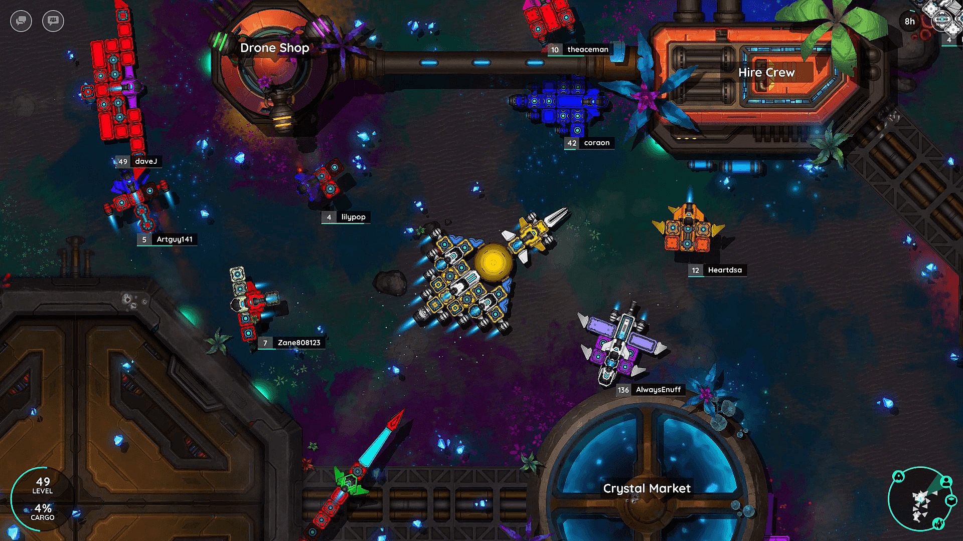 Command your arsenal of drones in epic space battles against ancient guardians for valuable resources. Compete with other pilots for the most valuable deposits of crystals, gems, elemental cores and scrap spacecraft parts, or team up with them to take on the most fearsome of opponents.