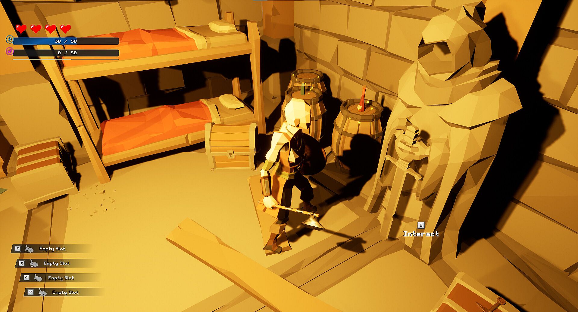 Exodus of Descent is a dynamic third person online dungeon-looter RPG inspired by games such as Runescape, Dark and Darker, and Monster Hunter. Party up with your friends to run through intense PvE dungeons. Each dungeon contains challenging enemies, bosses, secrets to find, puzzles needed to solve, and 150+ lootable items including weapons, armor pieces, amulets, and crafting materials. Risk it all to Escape your Descent. Will you make it out alive?