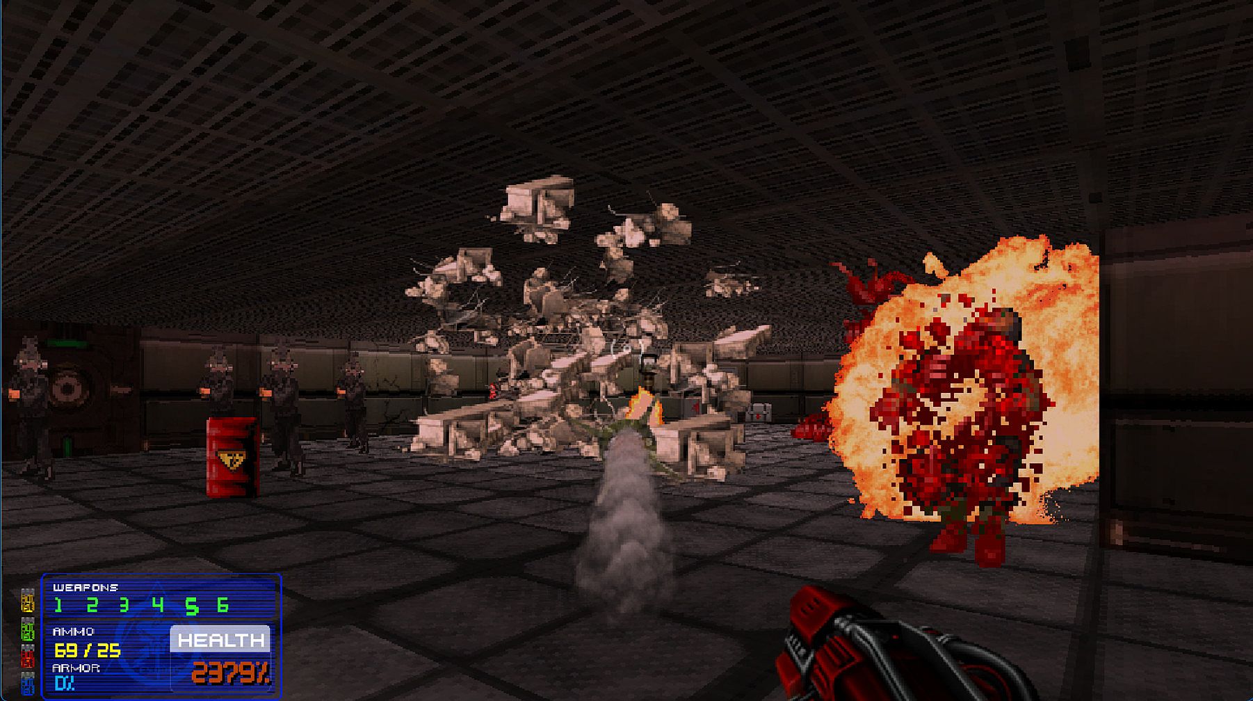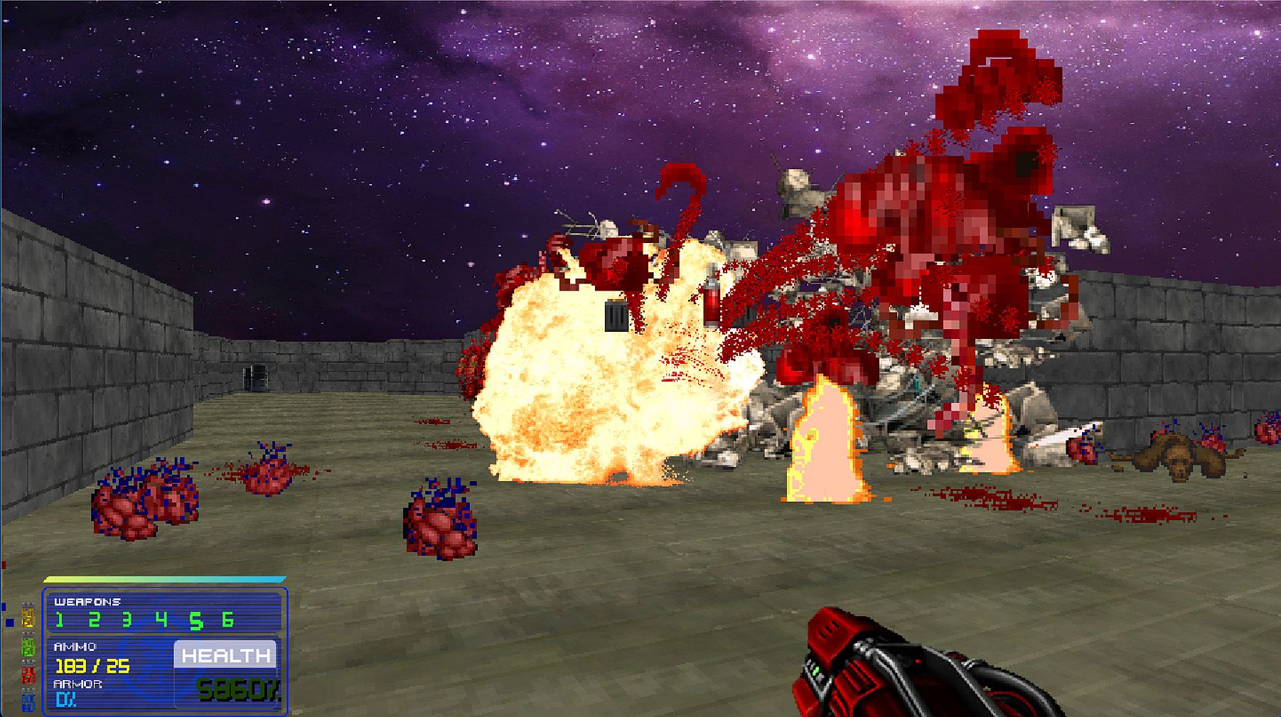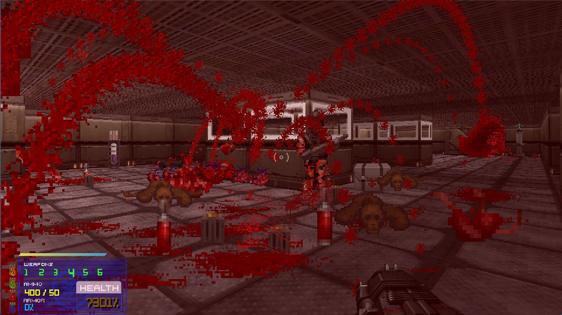 The engine is full of modern mechanics some of which are completely destructible environments, Newtonian physics, bullet-time slow motion effects, real-time dynamic lighting, gravity, particle systems and more.