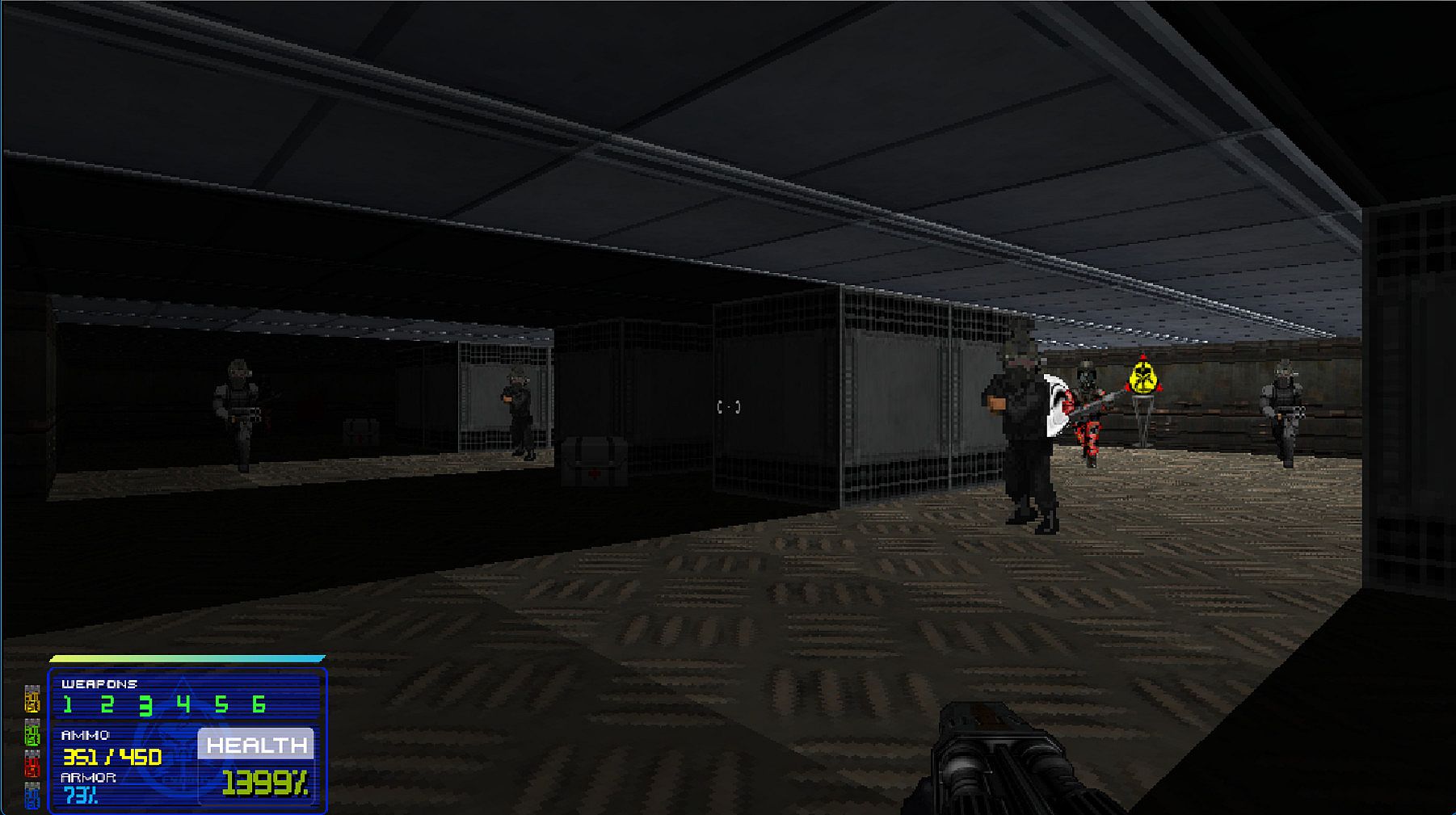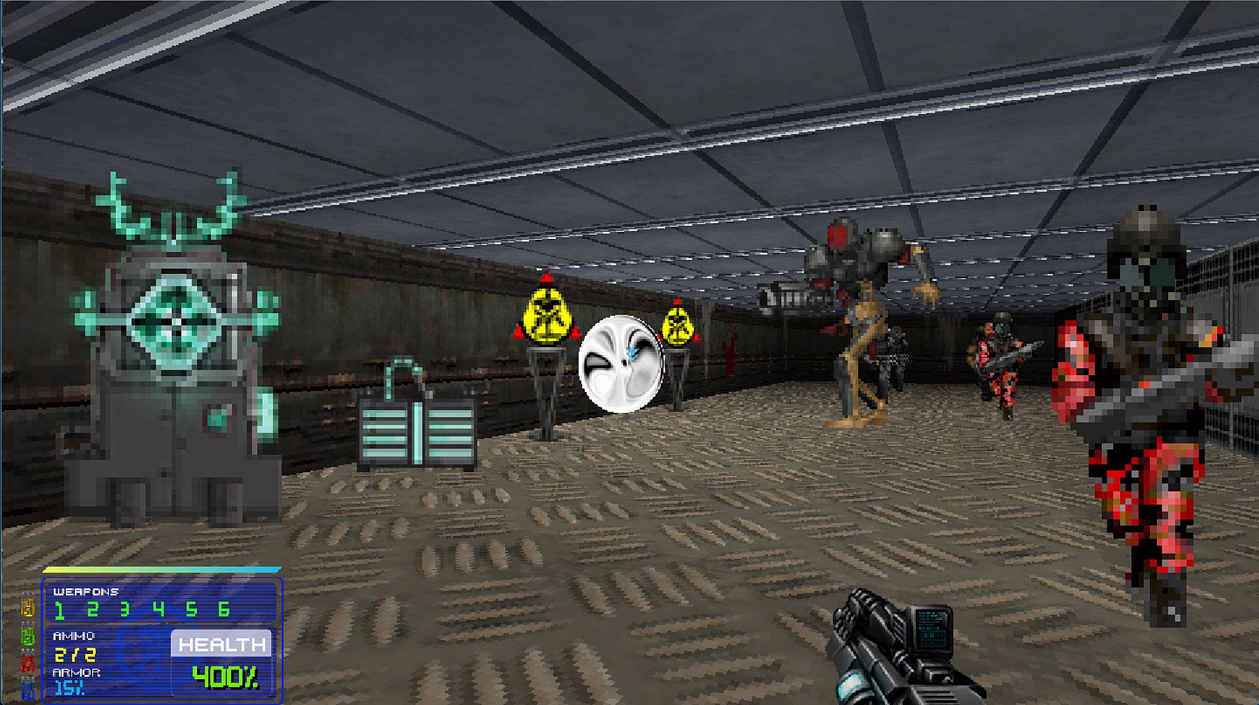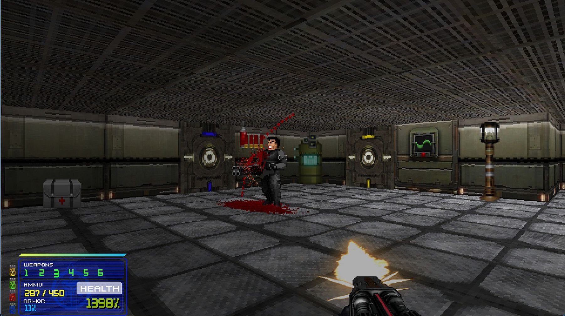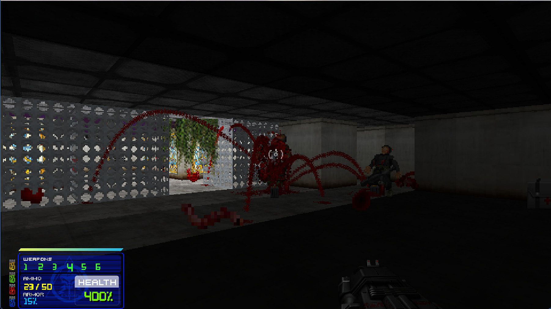The engine is full of modern mechanics some of which are completely destructible environments, Newtonian physics, bullet-time slow motion effects, real-time dynamic lighting, gravity, particle systems and more.