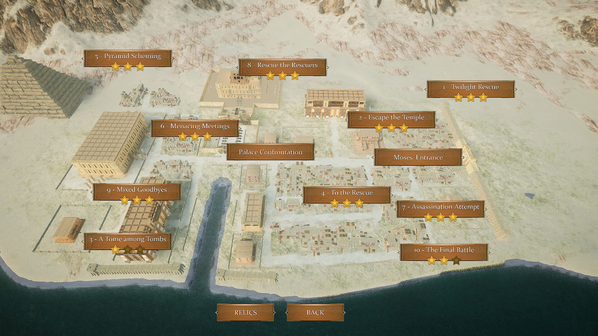 • Cinematics and in-game cut scenes with voices based on the historical fiction novel "Exodus: God of the Slaves"