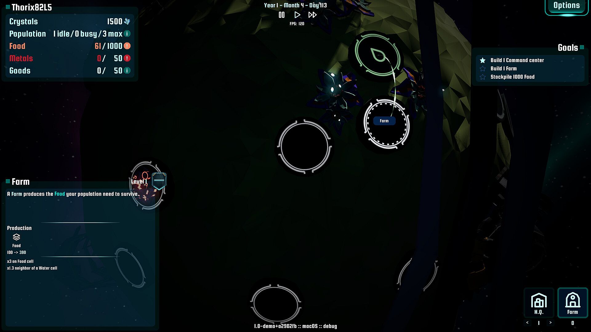 Before growing the population of a new planet, fulfilling their basic needs is required. You will have to ensure there is enough food and water to feed them and enough shelter for them to survive. Build farms, water pumps, and housing.