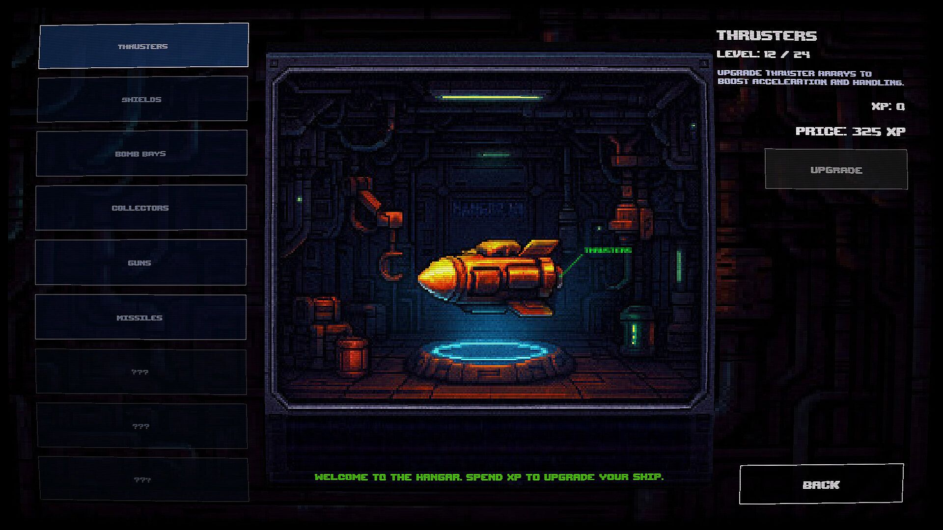 Upgrade and adapt your ship using harvested resources