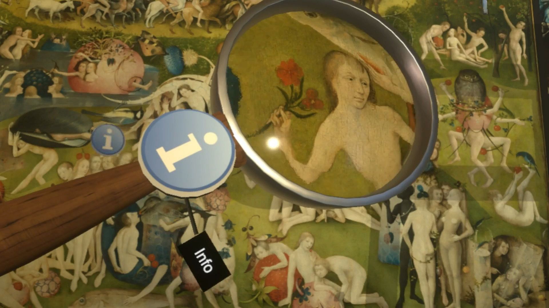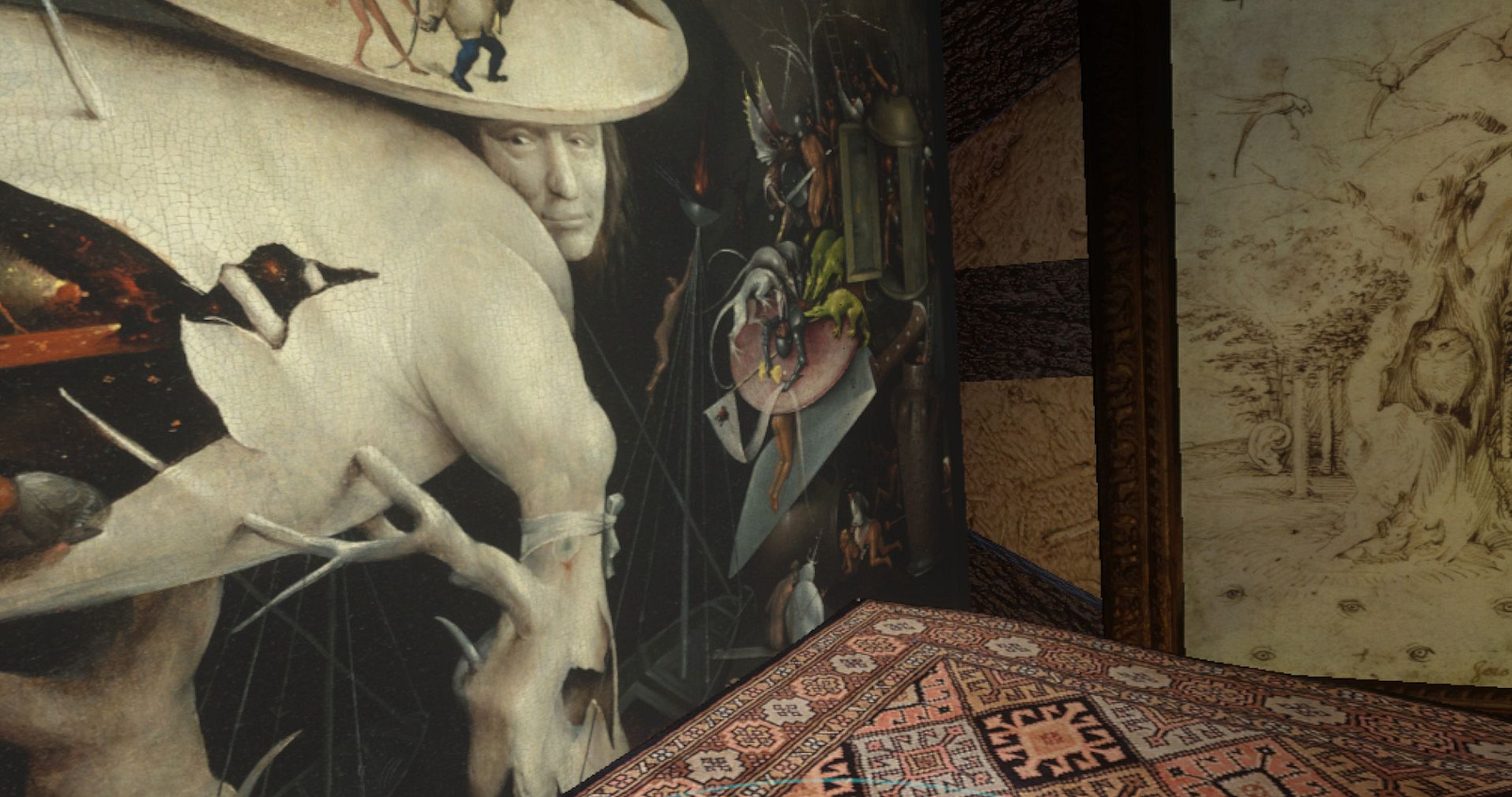 Eye of the Owl - The Hieronymus Bosch VR experience. Enabling you to go back in time to the artist’s studio and explore his masterpiece, The Garden of Earthly Delights. This application gives you the tools to explore the painting on your own in otherwise impossible detail, while the artist himself describes the bizarre and mystifying scenes. The painting has been digitized in ultra-high resolution, you can see the brushstrokes and into the cracks. Use a virtual magnifying glass you hold in your hand to discern the faintest details. Activate the magic carpet shrink transformation to see the characters life size and even more detail.