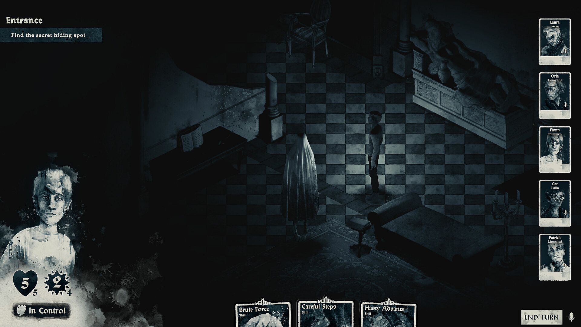 Build your hand of actions: Each playthrough you start with a hand of cards that equal actions that can be done each turn, limited by your action points. As you explore the lodge, you’ll discover new and better action cards to alter your playthrough.
