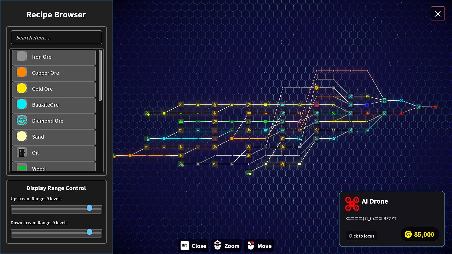 Furthermore, by using "Relays (Waypoints)," you can route connections around obstacles to create beautiful, organized wiring. The game also features a Batch Edit Tool, allowing you to move or delete multiple machines at once, making large-scale layout changes stress-free.
