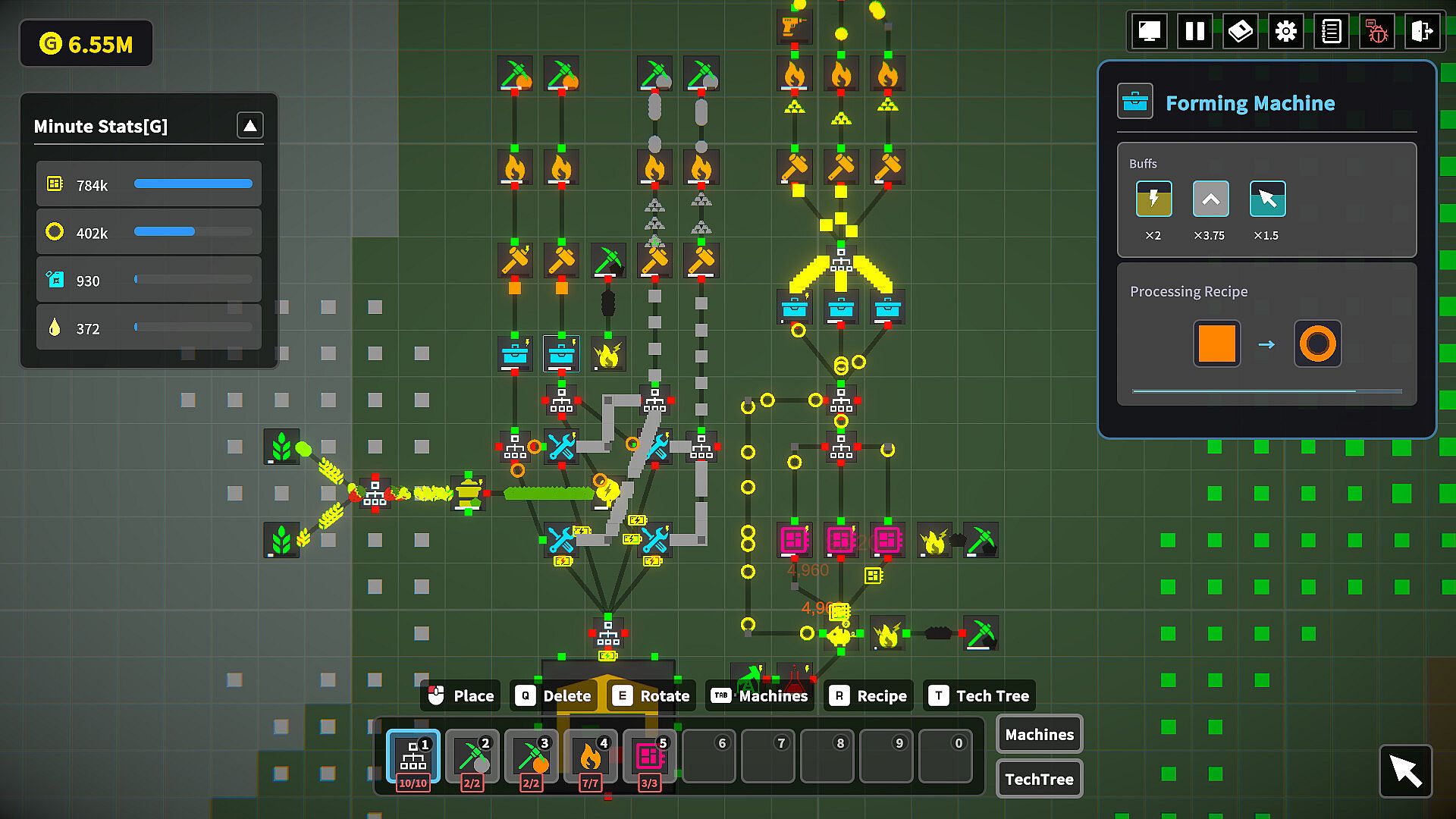 Build complex production lines, optimize efficiency, and accelerate production with a click. There are no enemy raids and no strict time limits. It is just you, a vast factory, and infinite possibilities through technological research.