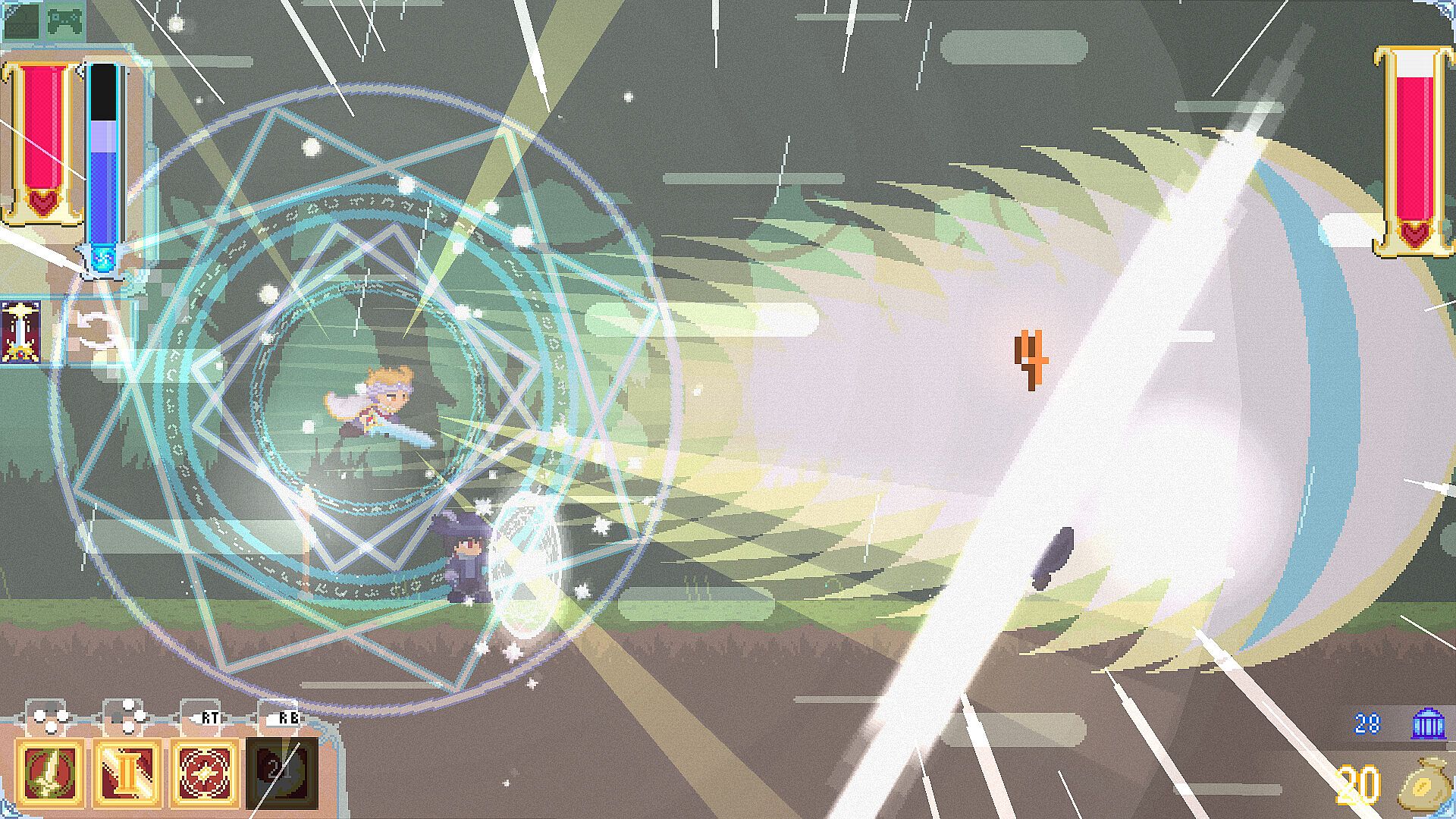 Play through the lens of multiple characters as you plow through foes and uncover the land of eternal flow. Fight alone or fight with a partner; Conquer the precarious land with finesse and skill.