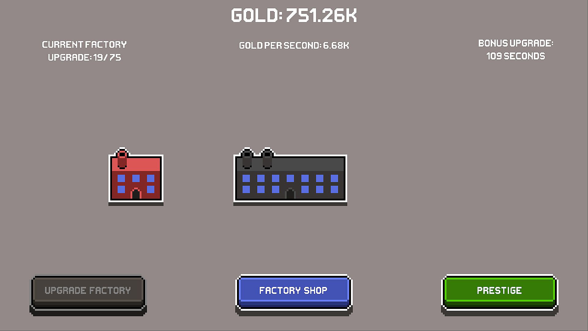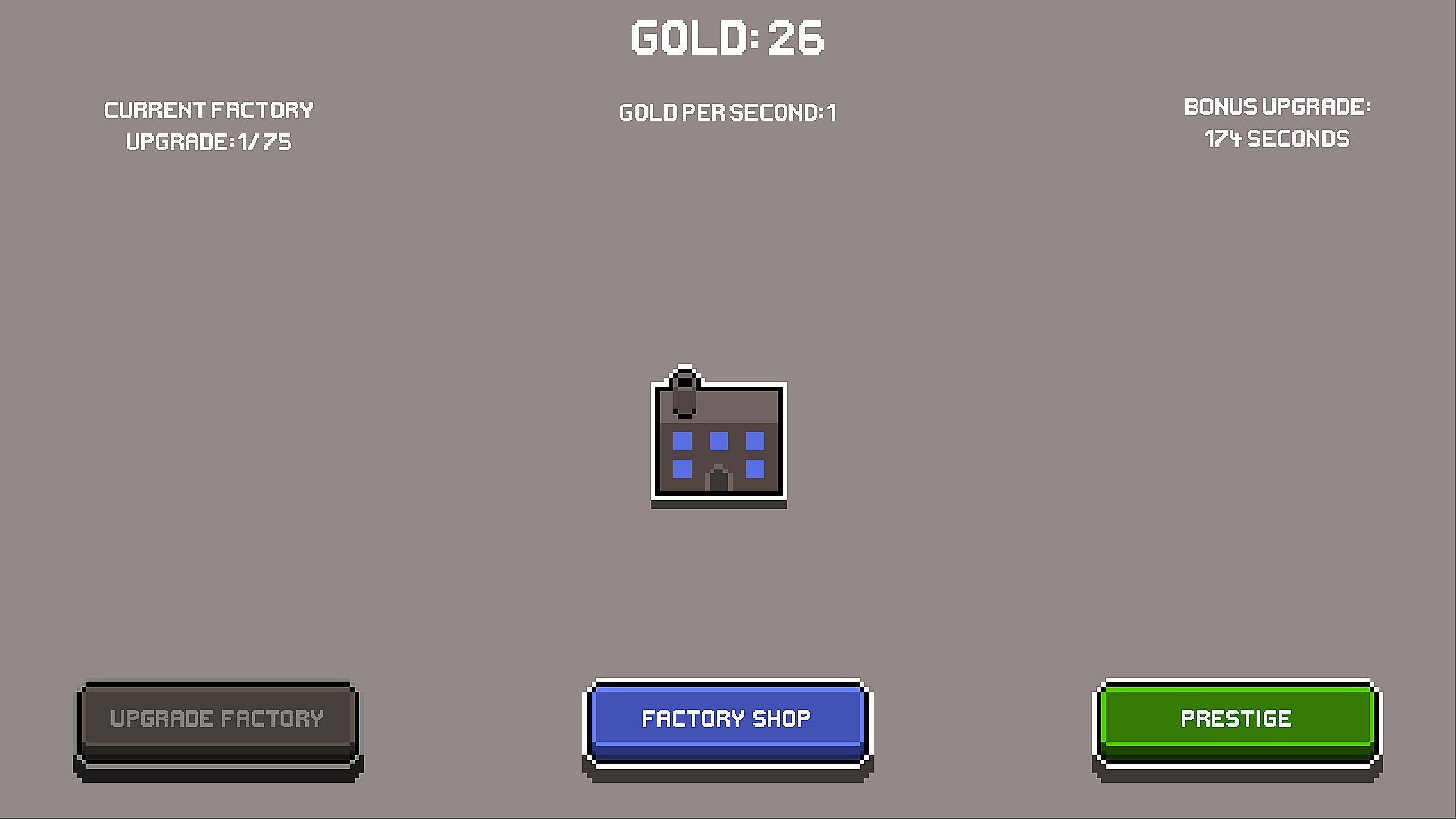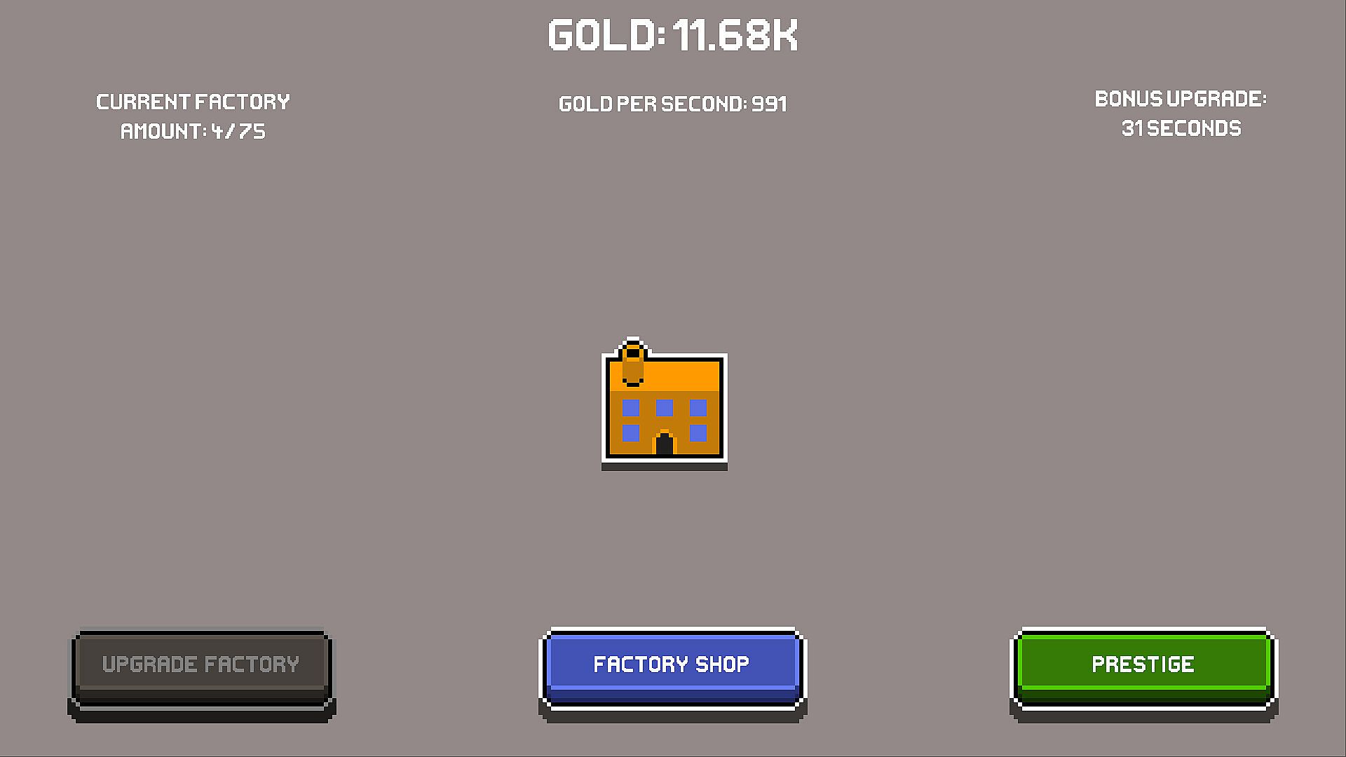 Factoridling is an idle game about buying and upgrading Factories. You start with one Factory which generates Gold with which you can buy upgrades to generate even more Gold.