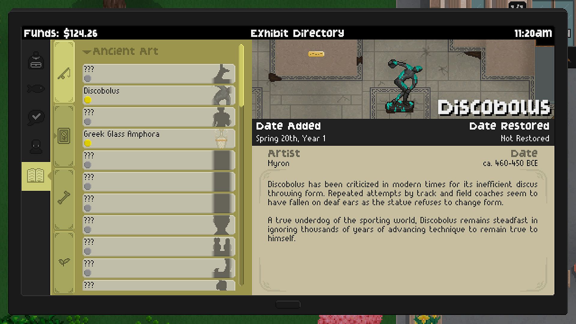 Due to aggressive budget cuts, the Fairmoon Museum is in a bit of a sorry state. But that's okay! You've got no budget and you know absolutely no one in town. That's how all the best curators start! You'll just have to get creative.
