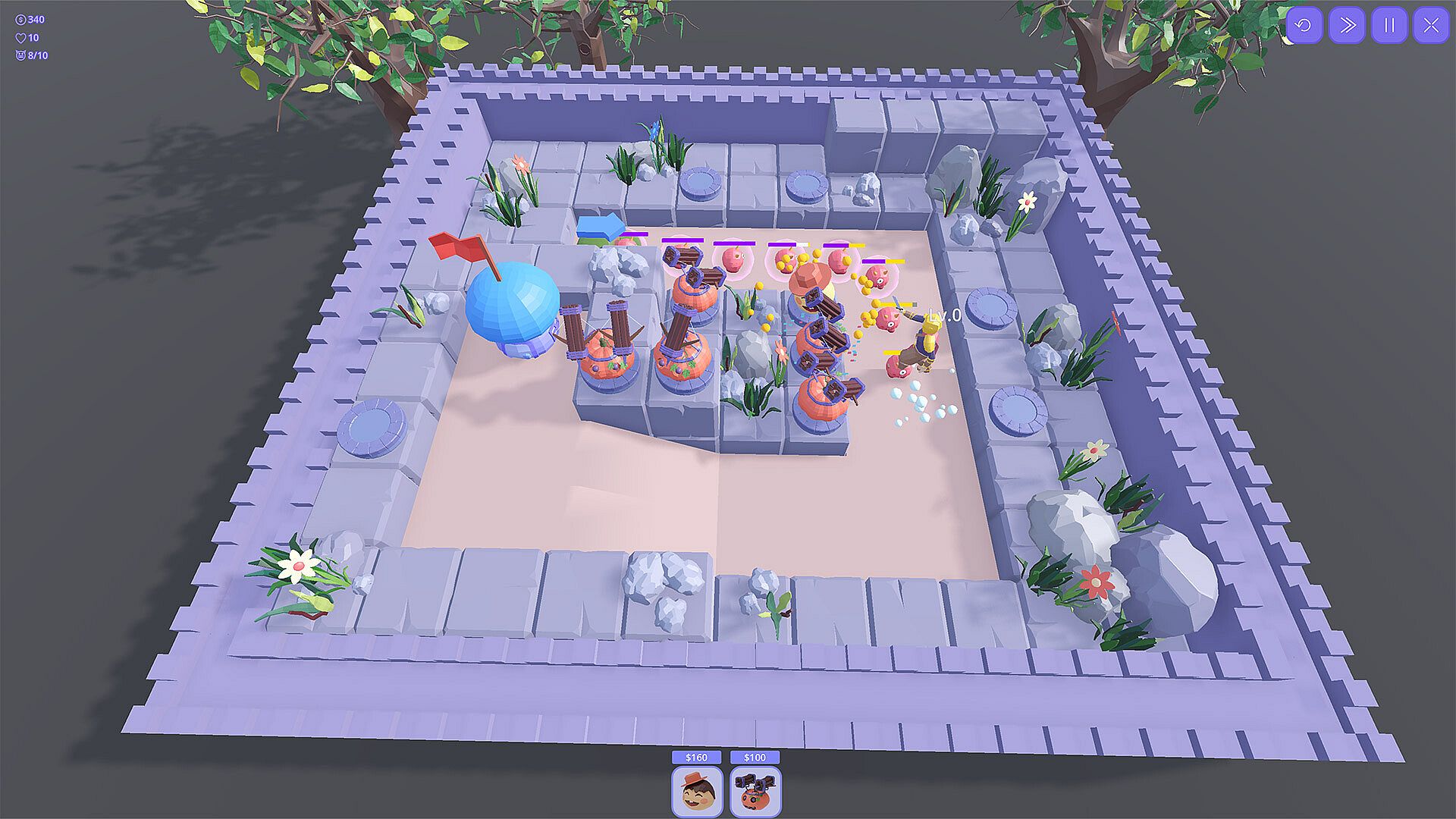 This is a 3D pigeon tower defense game that utilizes resources to build turrets and collaborates with heroes to block enemy attacks.