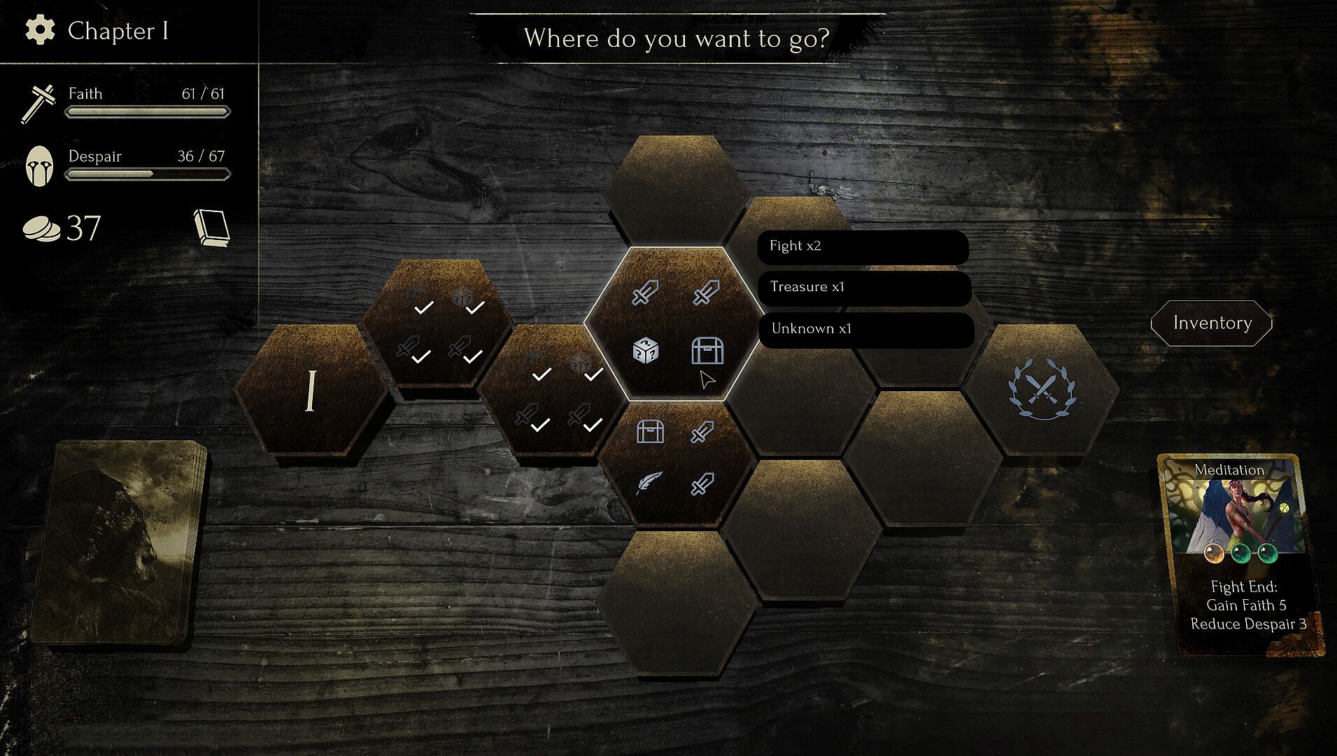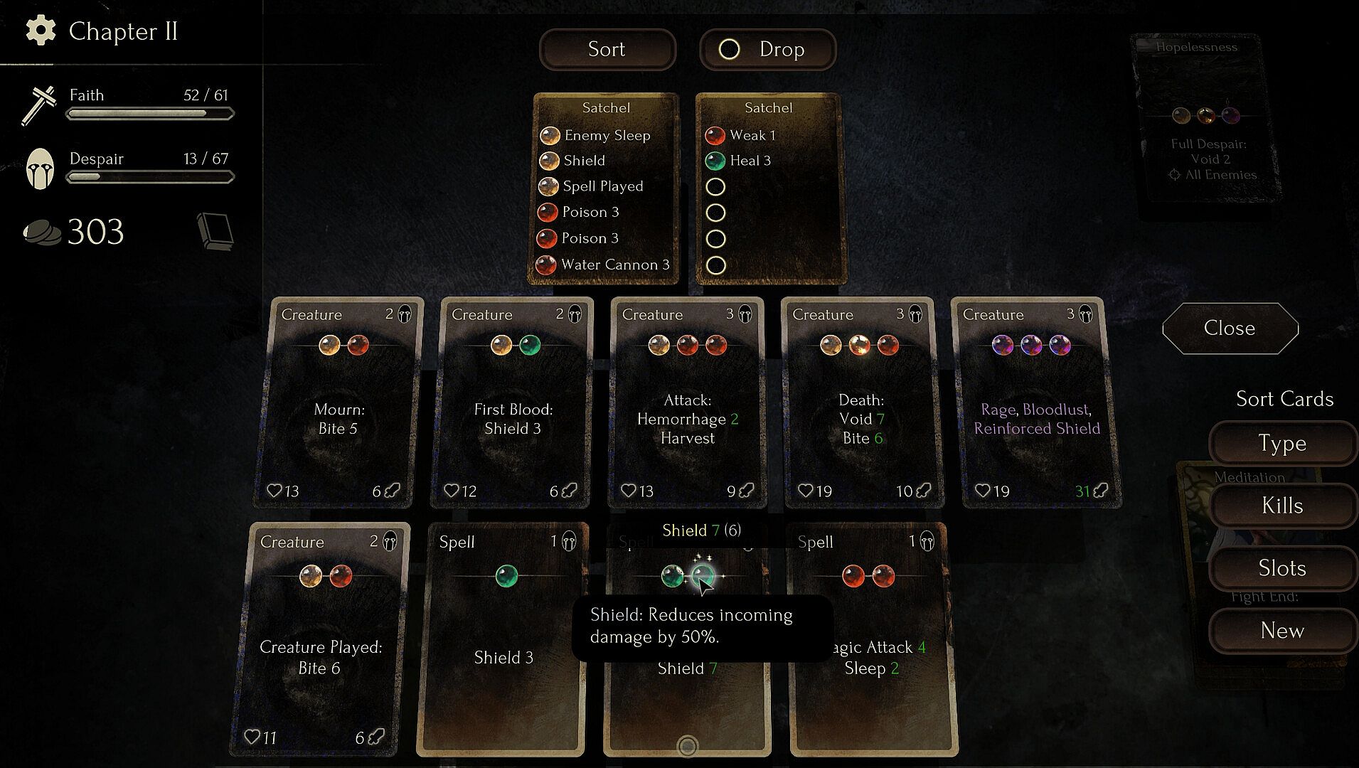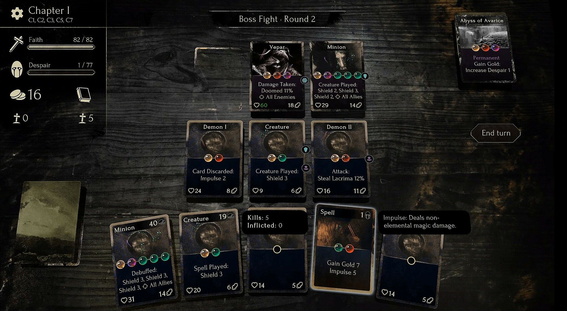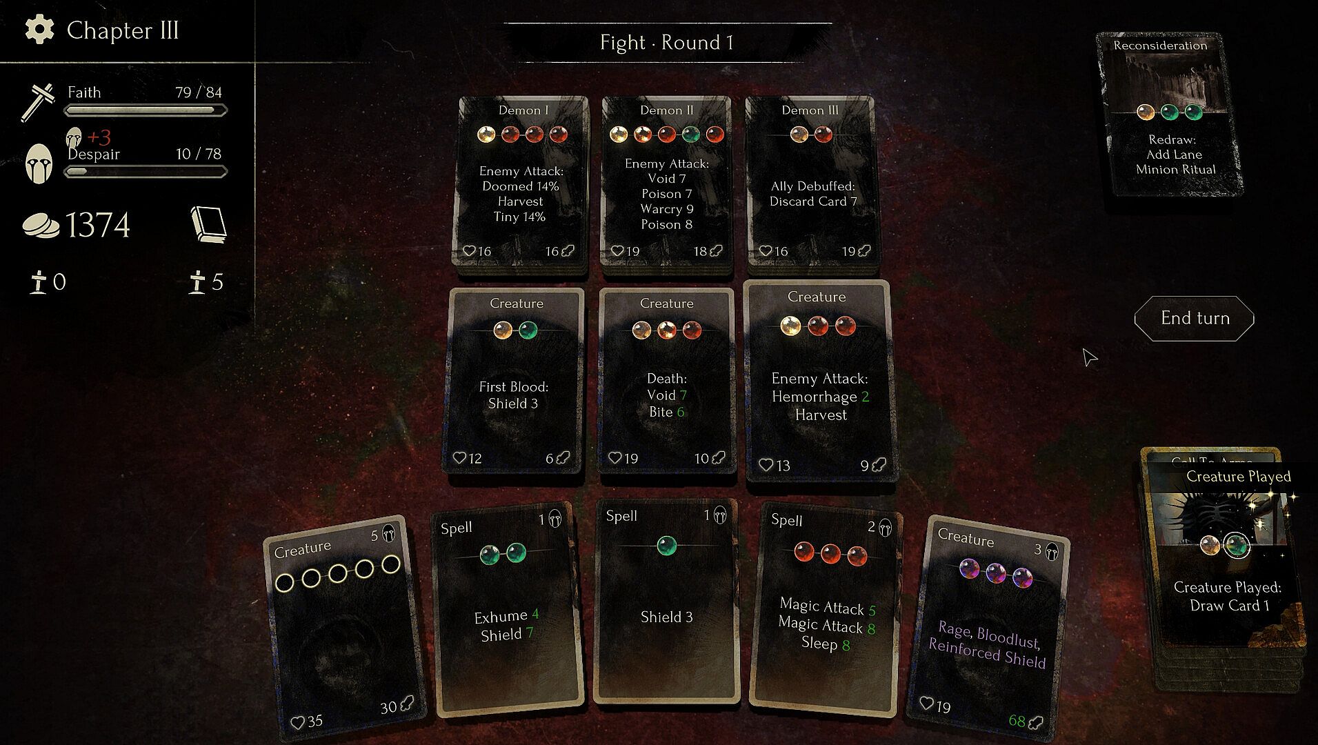 Faith in Despair is a grimdark roguelike deckbuilder that allows you to create your own cards using triggers, actions and modifiers to concoct devastating synergies. Every run holds new dangers and every action will inevitably push you closer towards despair.