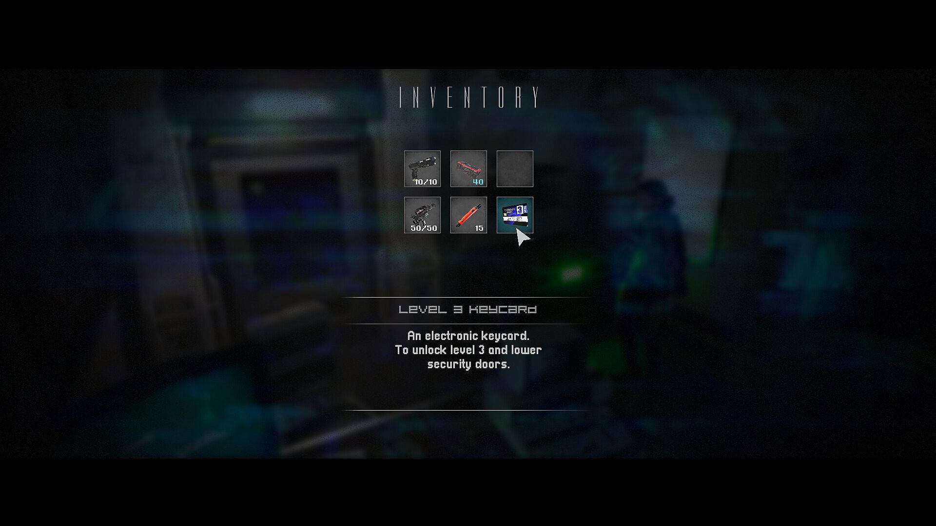 Explore a vast environment spanning several floors connected by a service elevator. Use access keycards to unlock new areas and solve various puzzles to progress.