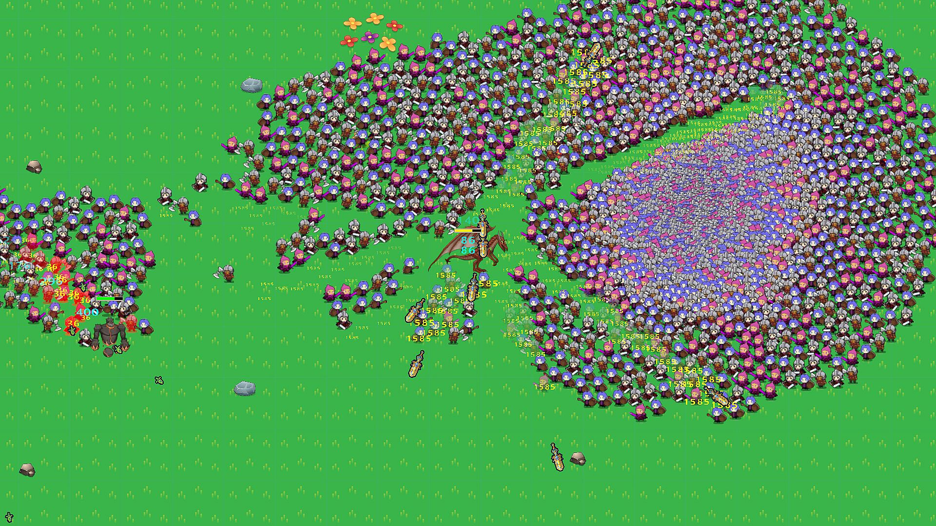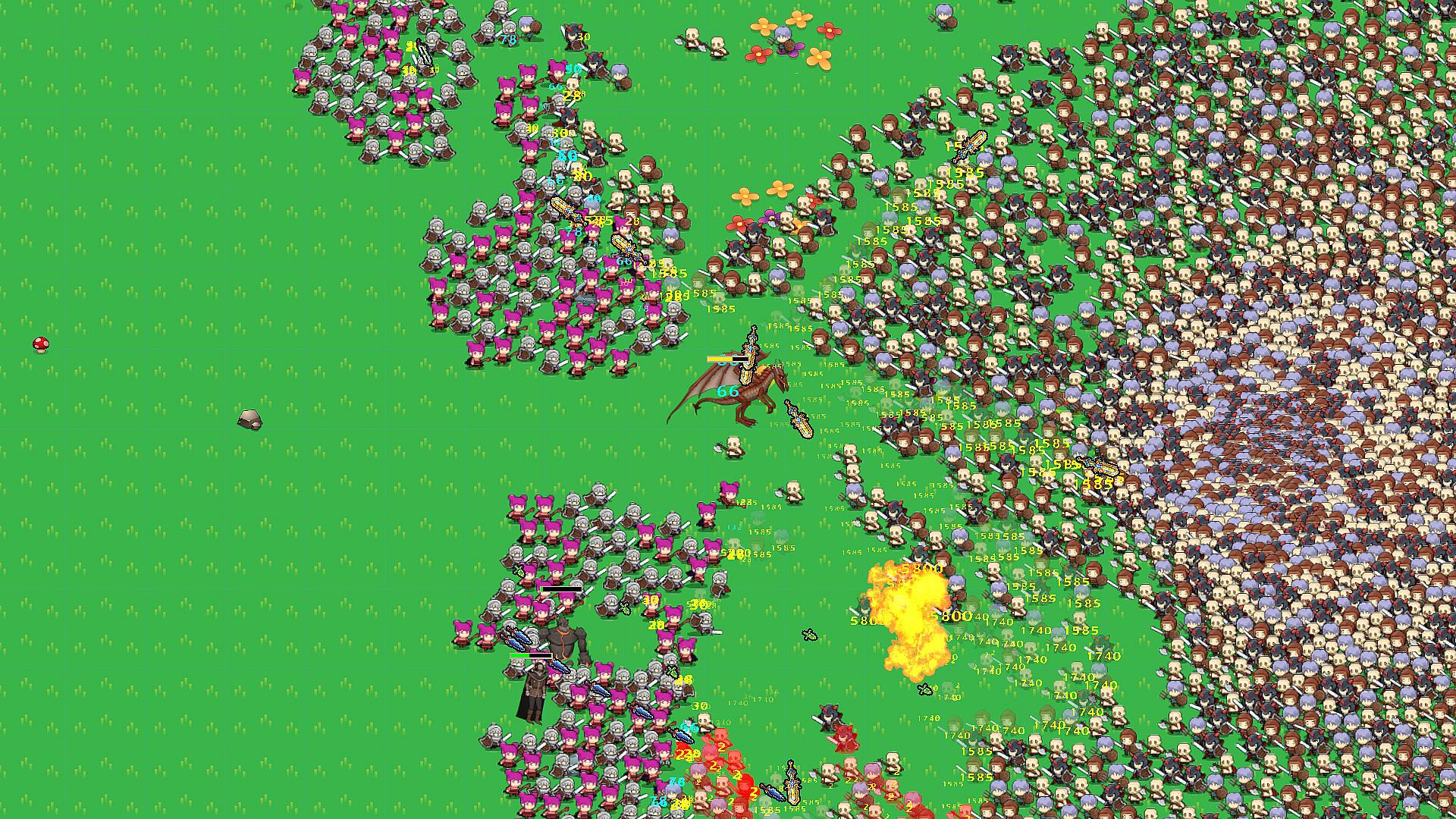 This is a single-player Roguelike 2D game. Over 3,000 character entities can appear on-screen simultaneously. Players can bring up to 4 automatically controlled characters into the game. Both these companions and the player character are equipped with a "‌Sentinel‌" that moves alongside them, periodically attacking the nearest target. The Sentinel's attack speed increases with level progression.At the start of a stage, both the player's faction and the enemy faction summon minor characters to engage in combat. The number of these minor characters can be expanded through in-game store purchases. During gameplay, the player-controlled character navigates the stage to evade enemy attacks, utilizing the Sentinel and active skills for tactical operations.
