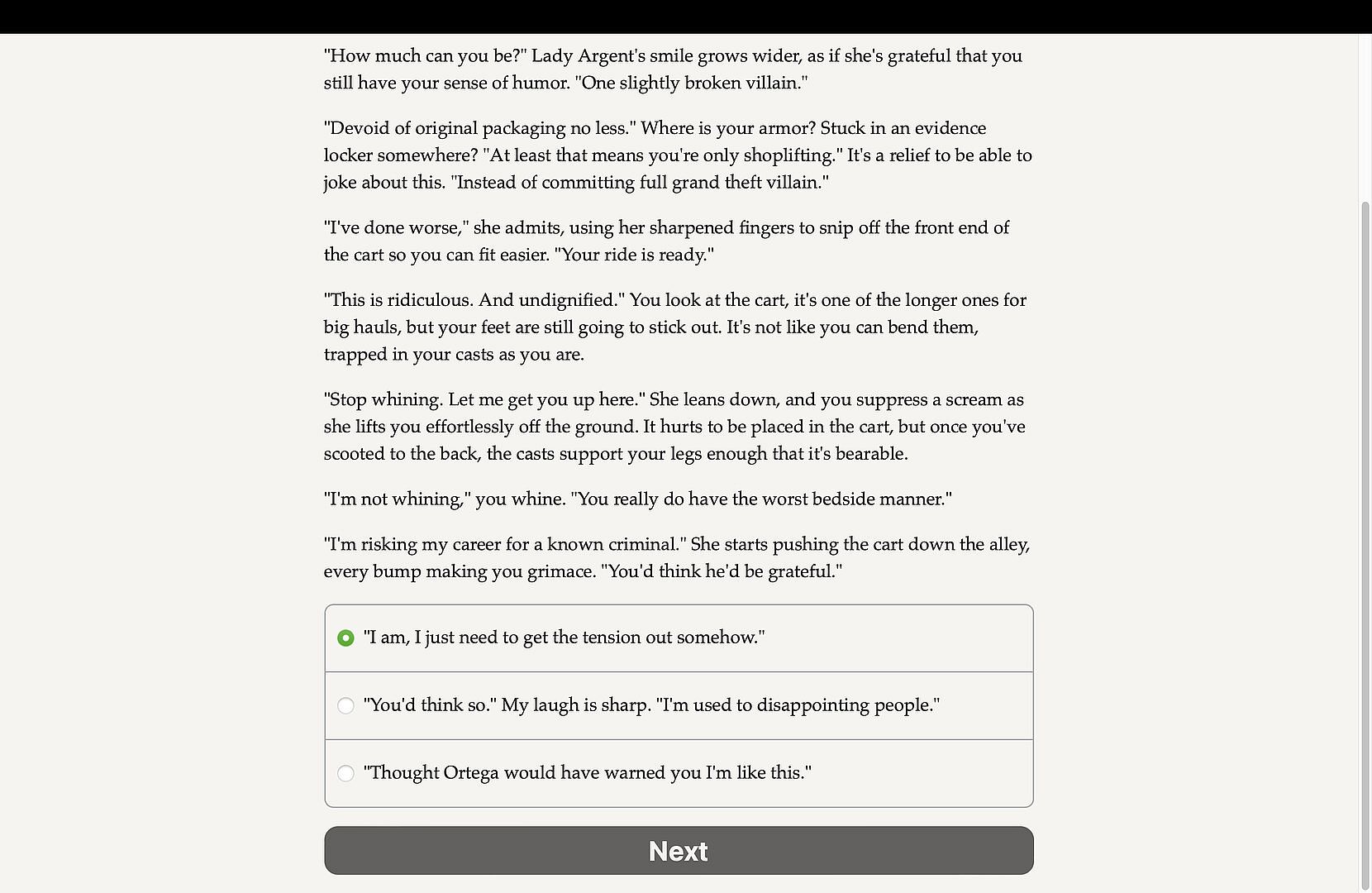Fallen Hero: Revelations is an interactive superhero novel currently under development by Malin Rydén. It's entirely text-based—without graphics or sound effects—and fueled by the vast, unstoppable power of your imagination.