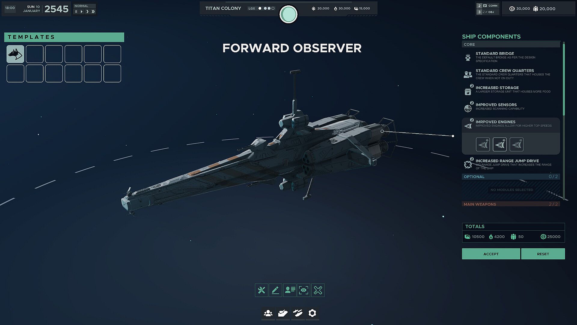 Falling Frontier incorporates over 20 different ship types, including frigates, destroyers, cruisers, and battlecruisers, alongside an array of civilian ships. You may create your own designs and choose weapons, utility modules, and other components to best serve your strategic needs.
