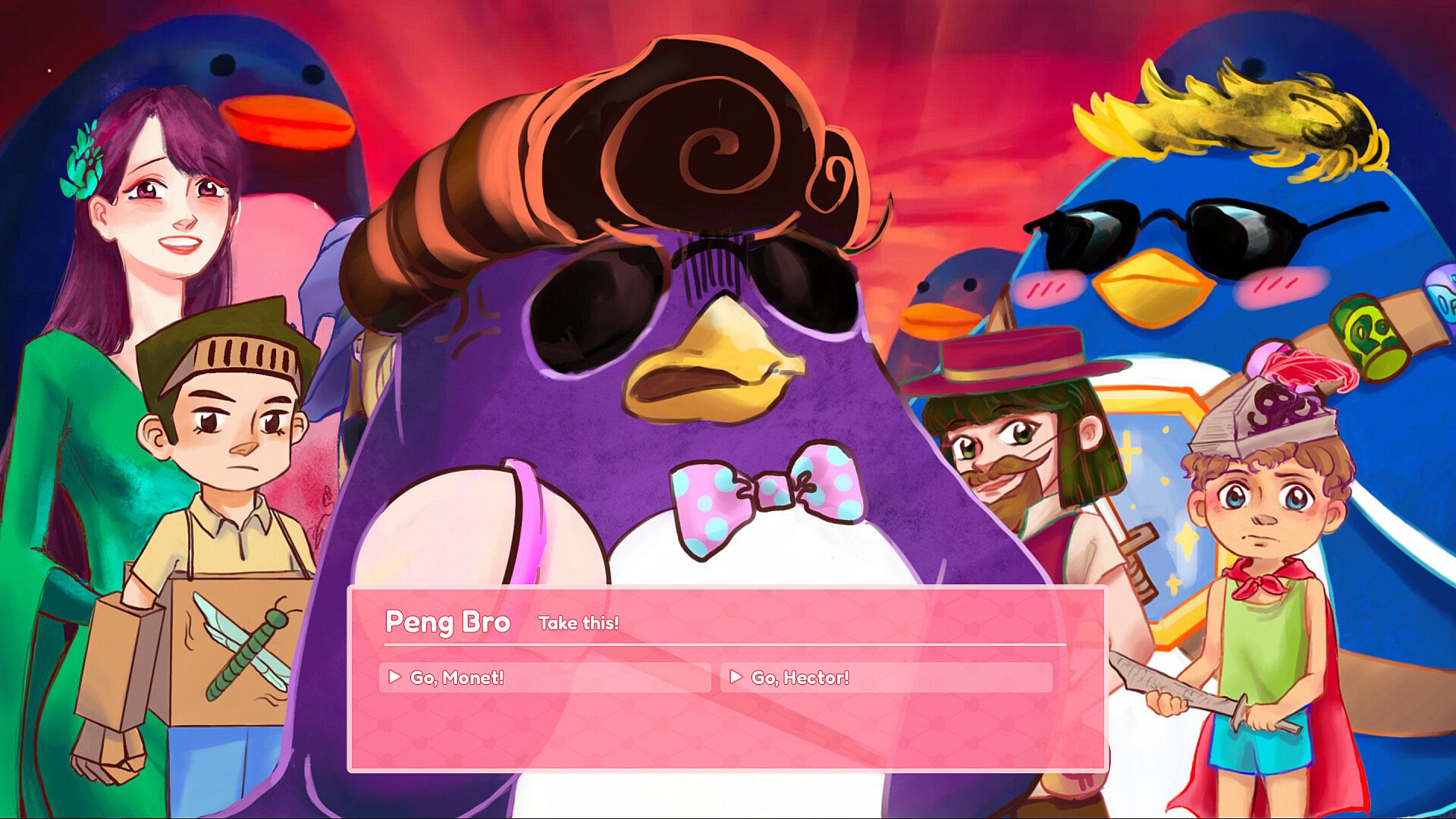 Central to the gameplay is the Peng Mafia, a whimsical antagonist group that players must outmaneuver using family resources. Mechanics include decision cards that influence outcomes in relationships and battles, promoting replayability through different choice paths. The game's indie roots shine in its focused scope, avoiding bloated systems for a tight, thematic experience.