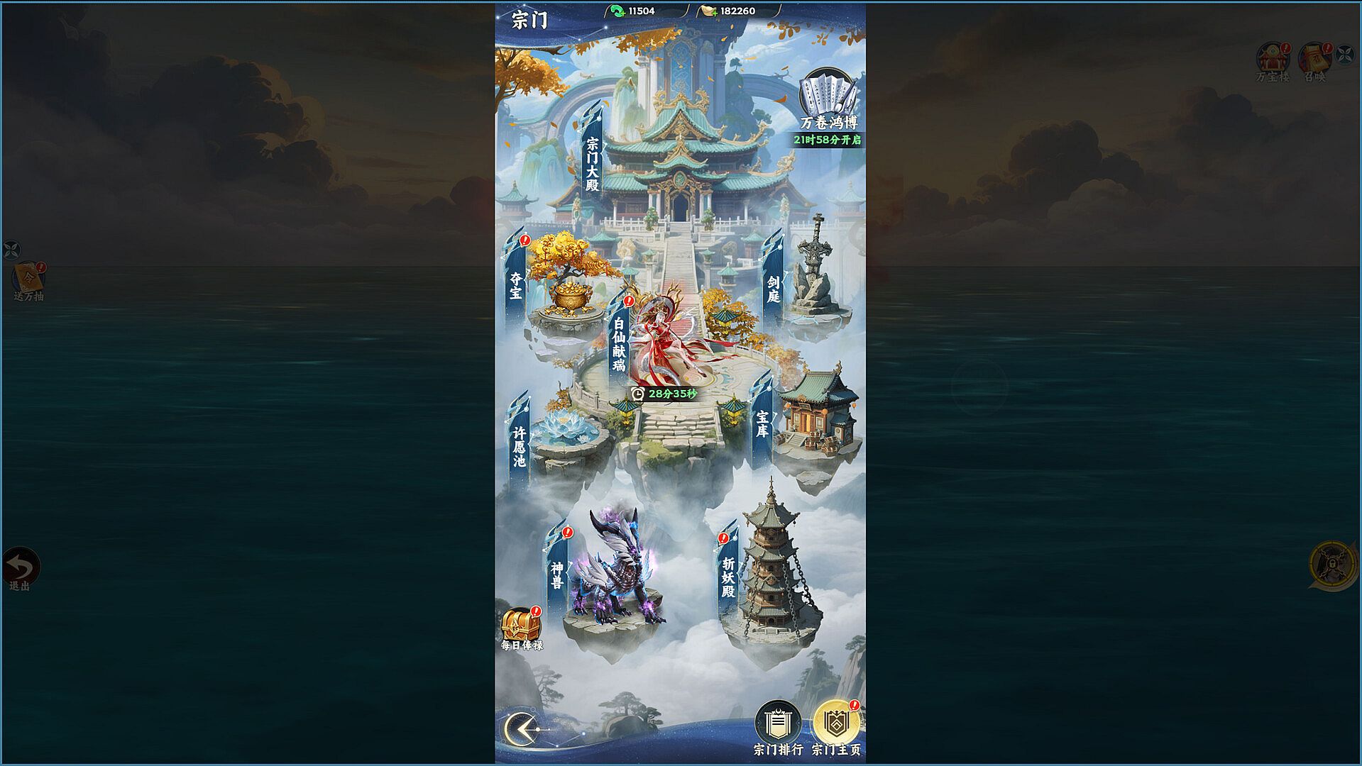 【宗门系统】不仅仅是聊天室,更是资源争夺的堡垒。宗门神兽供奉、祭坛夺宝、主宰宝库分配,都需要宗门上下的通力协作。