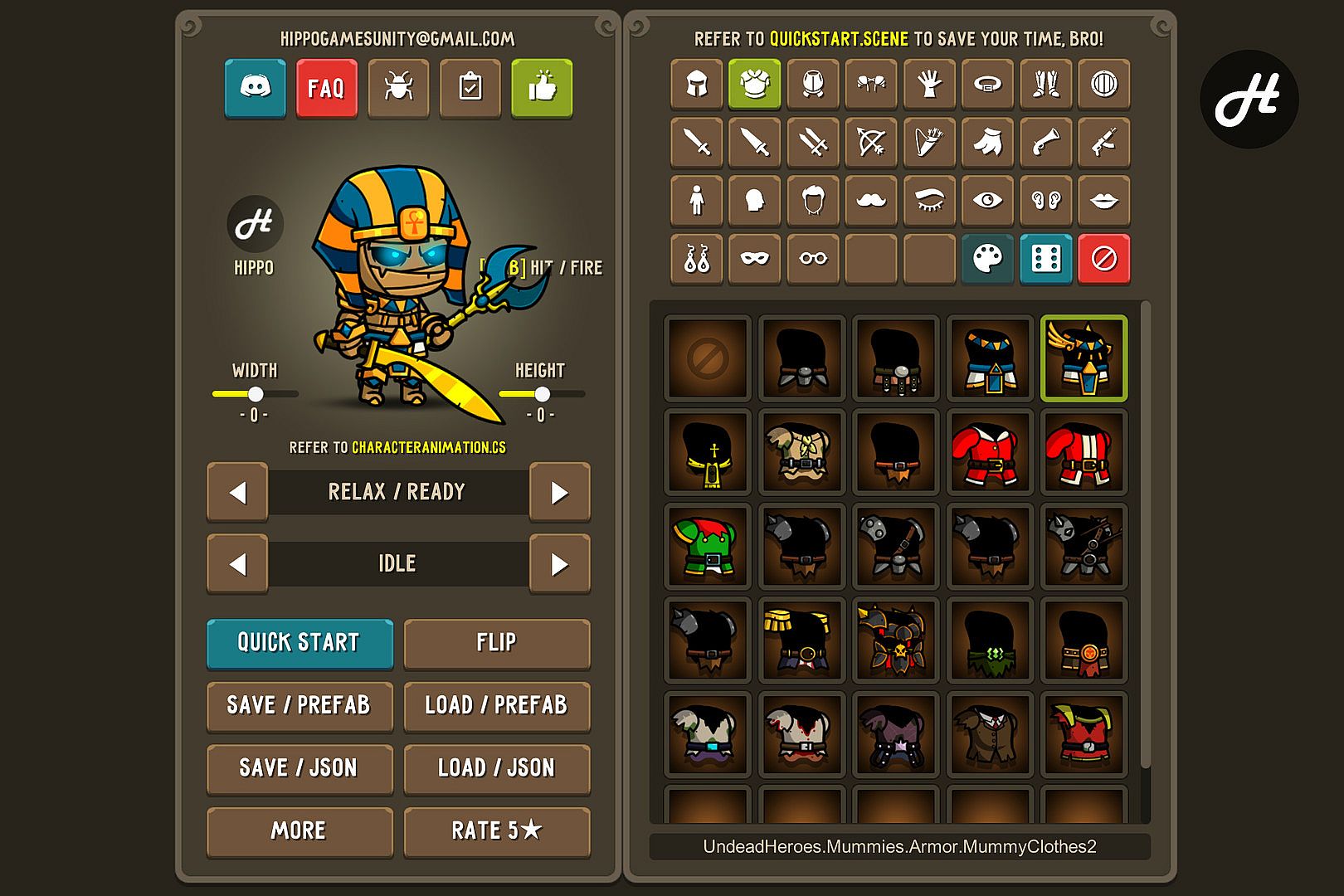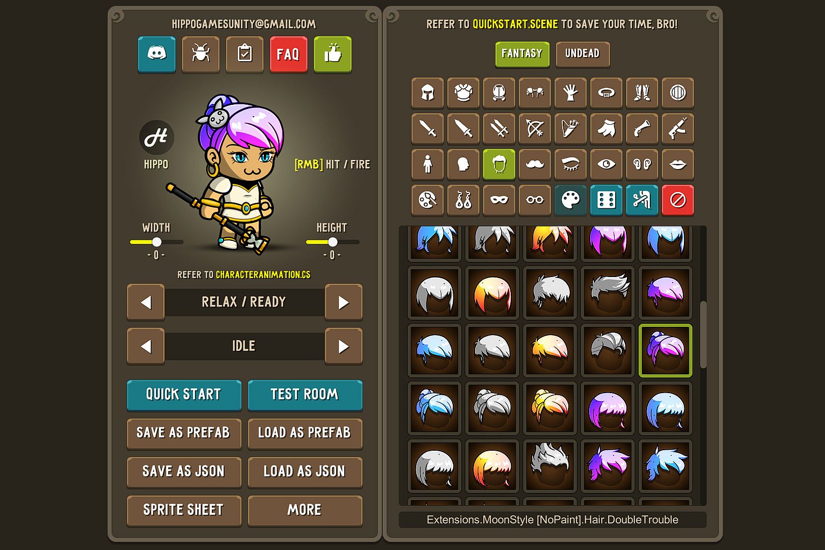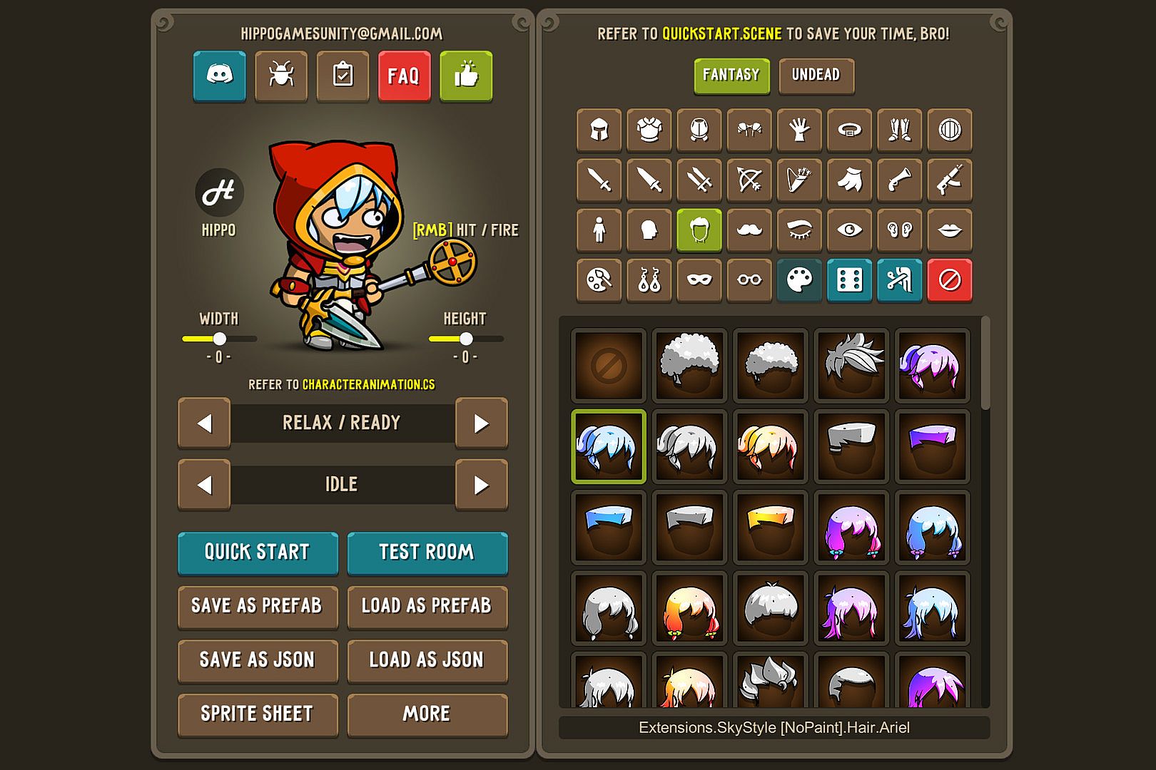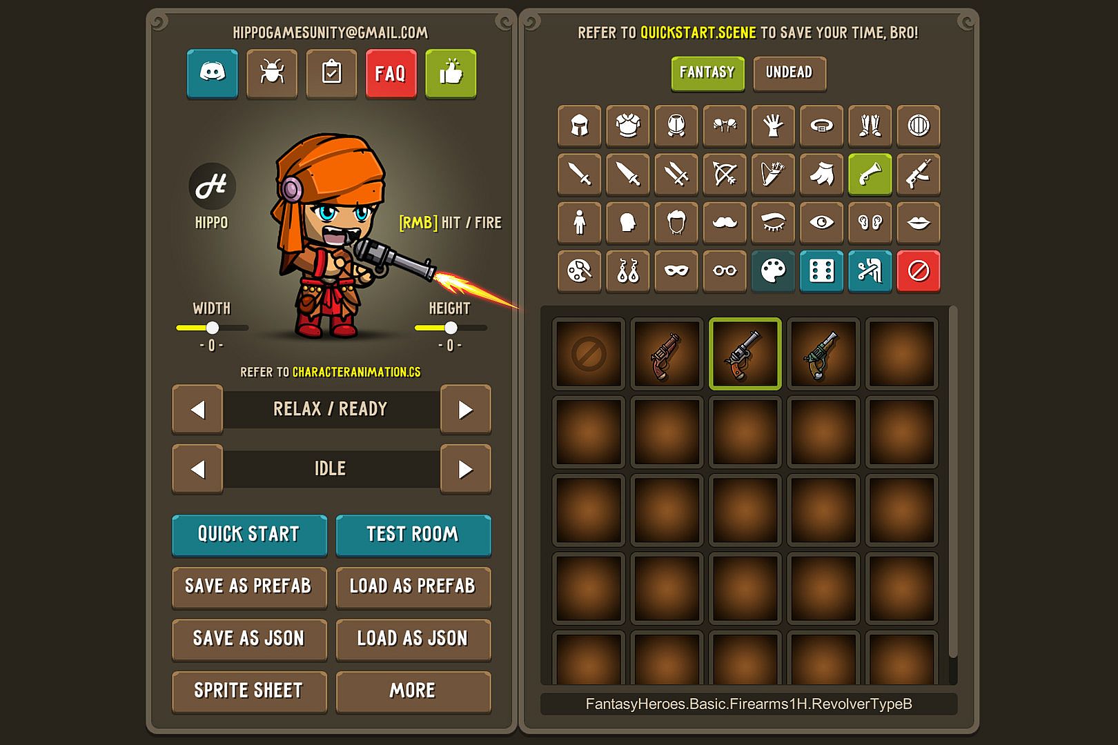 • Animations that can be exported: Idle, Walk, Run, Slash, Jab, Bow Shot, Cast, Death