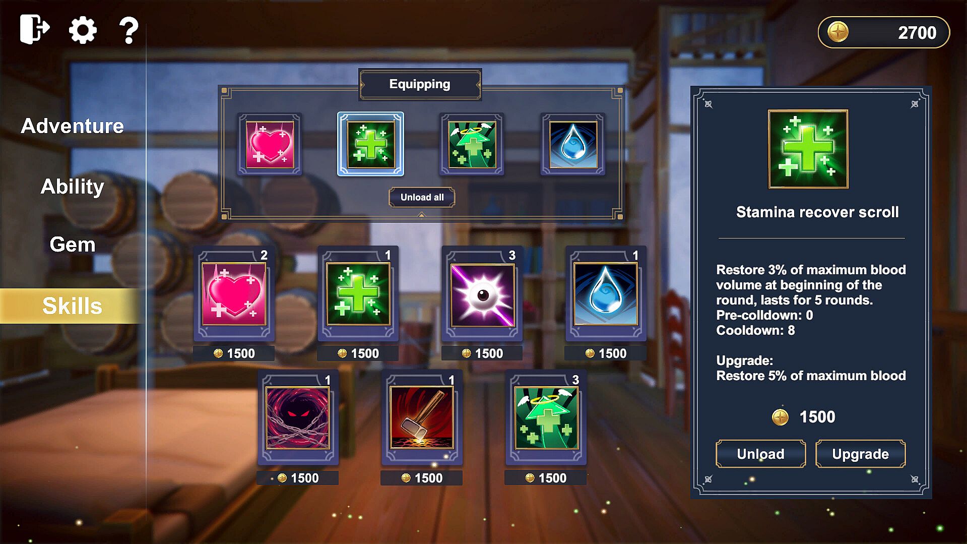 During battle, there are four kinds of gems with different effects, each representing different functions. Just match and place three or more gems in the same row or column, and the gems will be annihilated and the effect of the gems will activate. The more gems you annihilate at one go, the more powerful the effect will be. Each gem has various special variations, and annihilating special gems can trigger more powerful chain-annihilation. Use this method wisely to greatly increase the chance of passing levels!