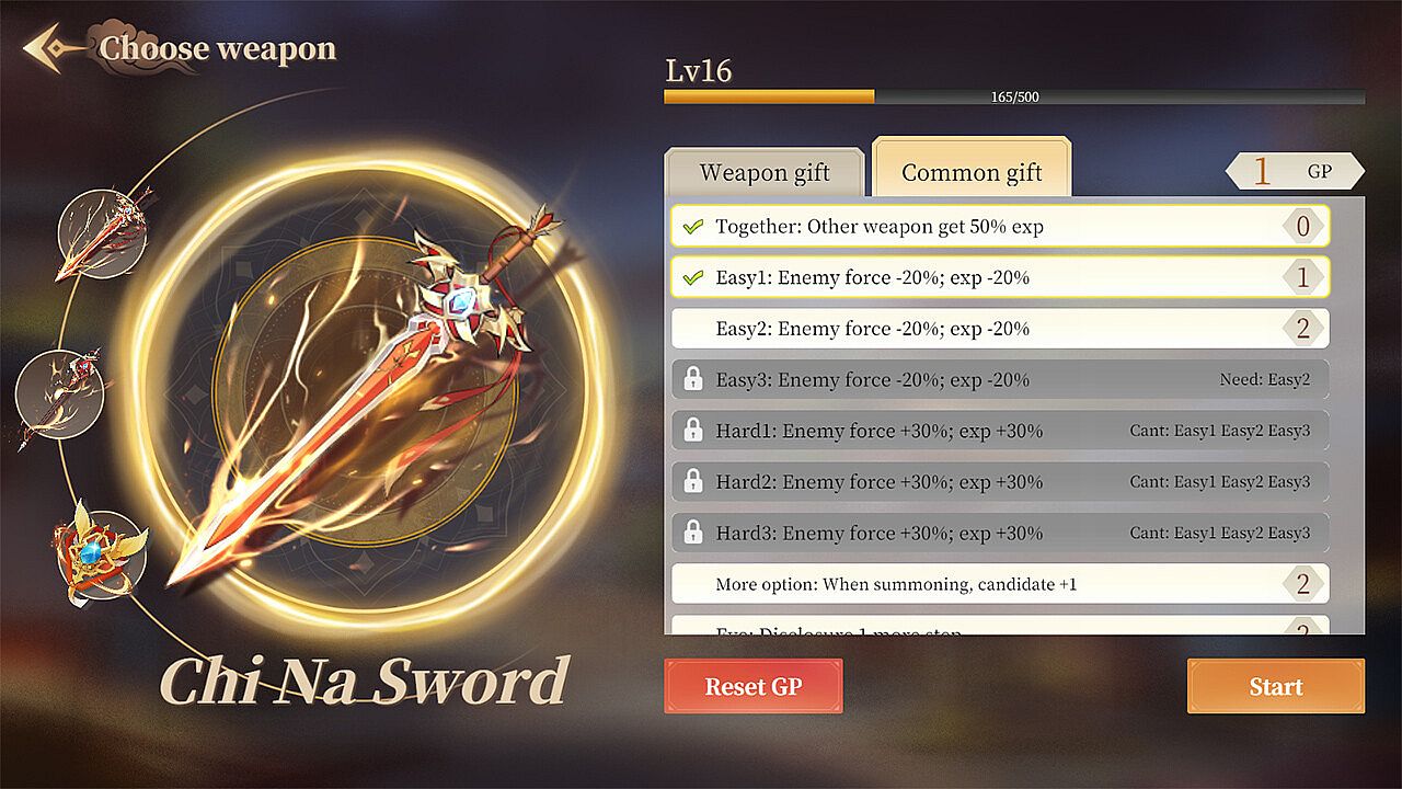 3 different weapon give you 3 different experience!