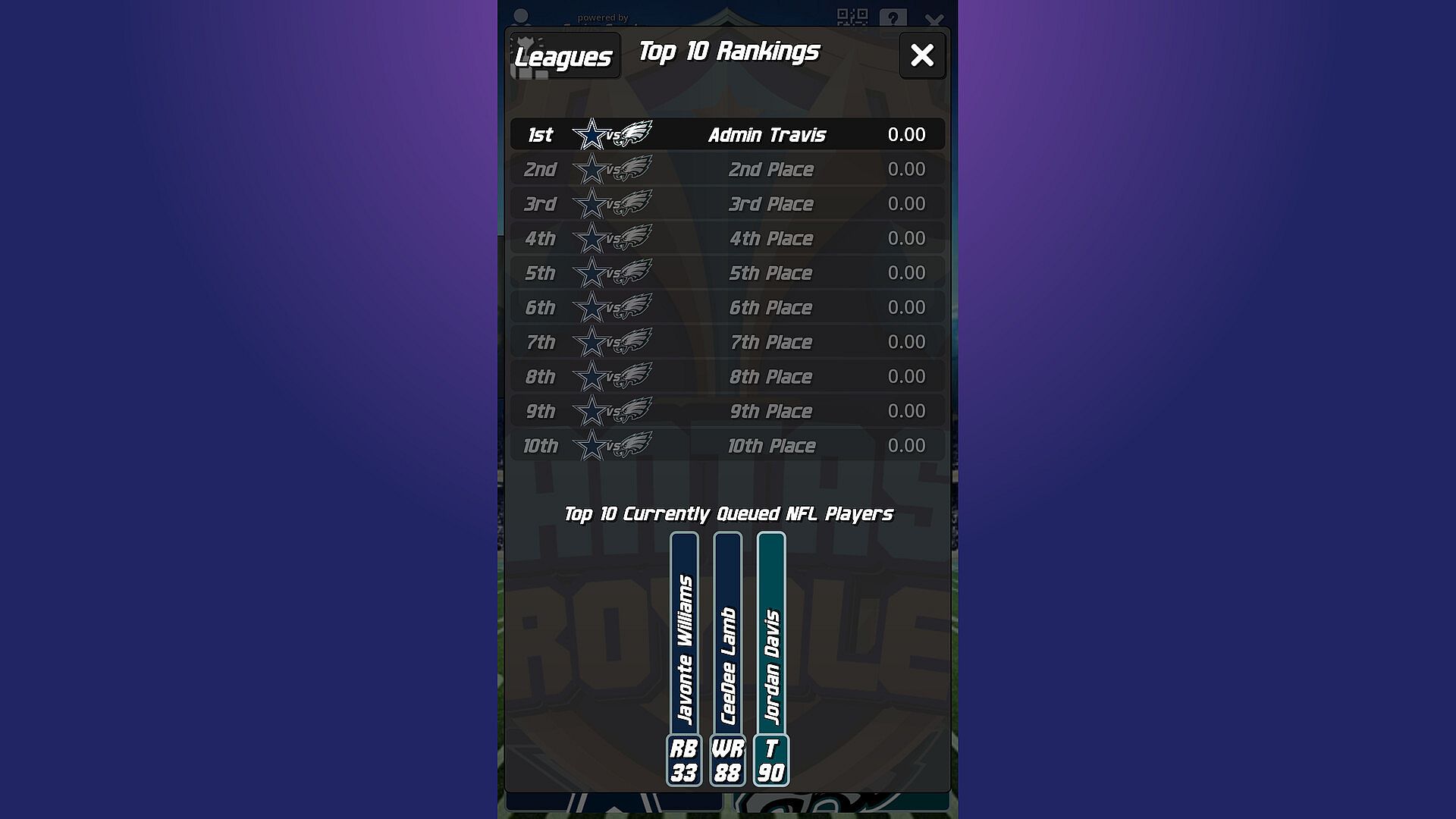 Fantasy Royale is built for maximum engagement, with real-time scoring that reflects every catch, tackle, and touchdown the moment it occurs. Challenge your friends or test your skills against the world on our global leaderboards. With deep player analytics at your fingertips, you have all the data you need to make informed, strategic decisions that can turn the tide of any game. This is more than fantasy sports—it's your chance to manage your team and prove your strategic genius with every snap.