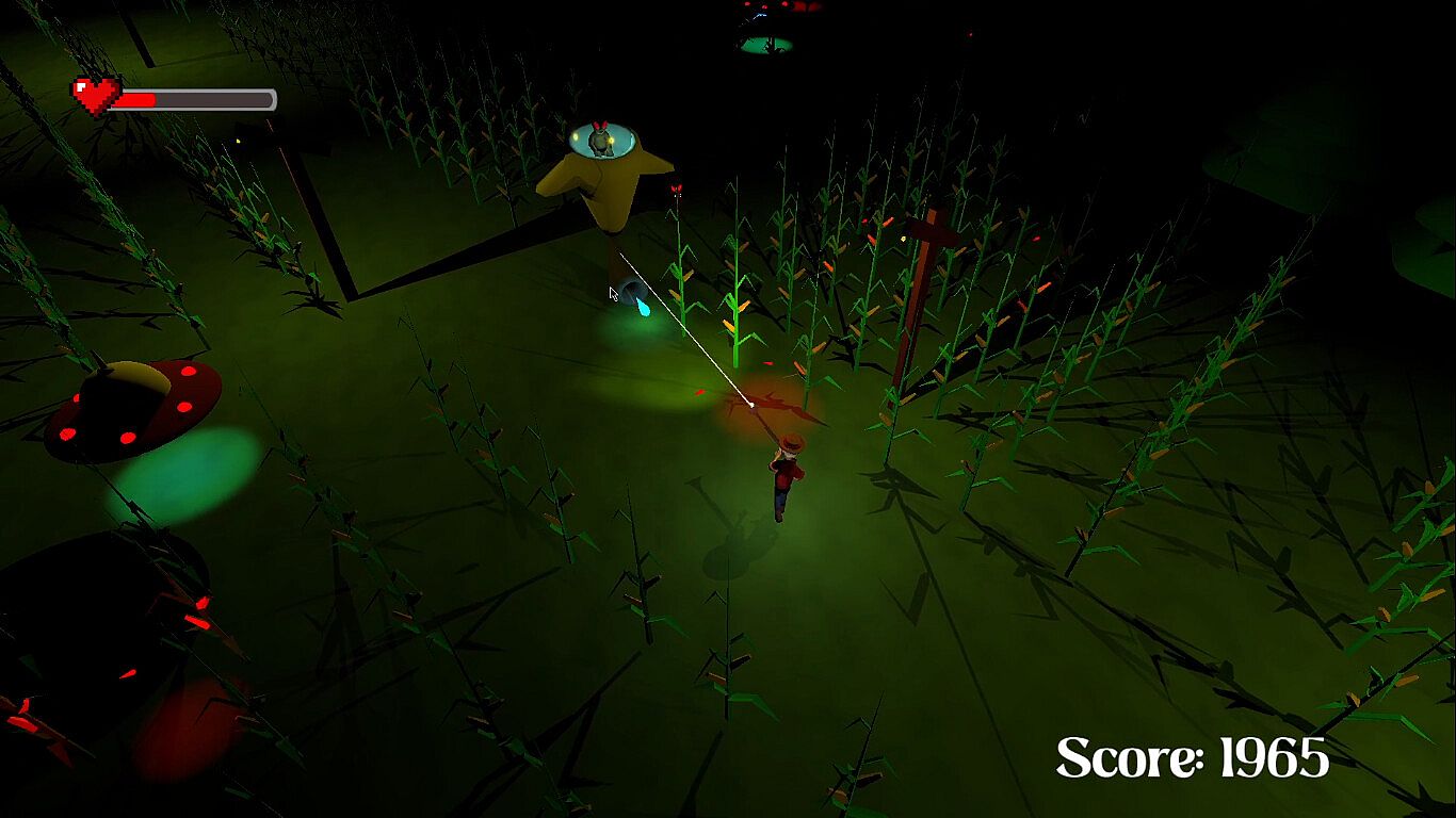 Farm Wars the farmer's wrath is a survival roguelike where you protect your farm from an alien invasion by shooting them and sometimes get temporary weapons or recover your health to continue your battle against the aliens.