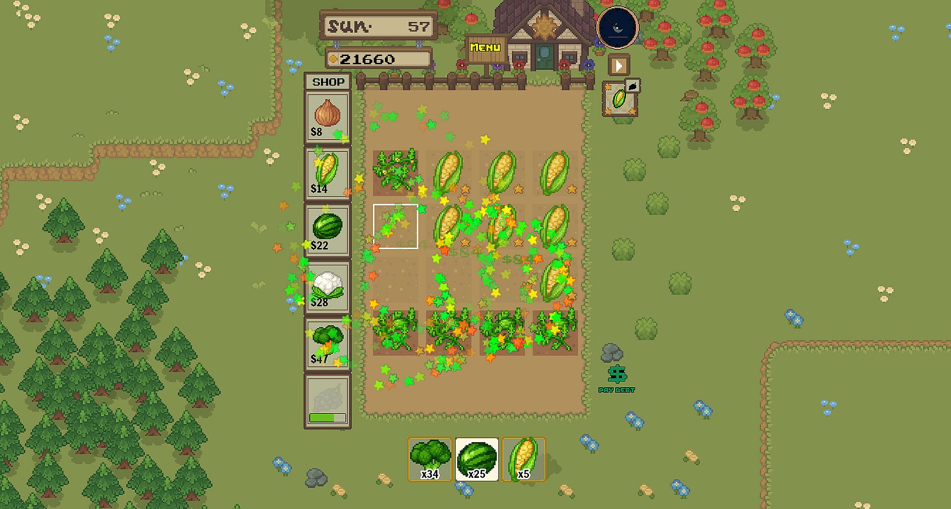 Growing and selling crops drives the action in this casual indie farming game. Players plant seeds, harvest them, and trade at smart prices to clear farm debt. Quick days keep the pace lively while crows threaten to snag ripe produce, demanding constant vigilance. This active farming title suits fans of easygoing play sessions. Buy low and sell high to build profits and fend off pests. Players who enjoy relaxed yet engaging crop management find a fresh take here.