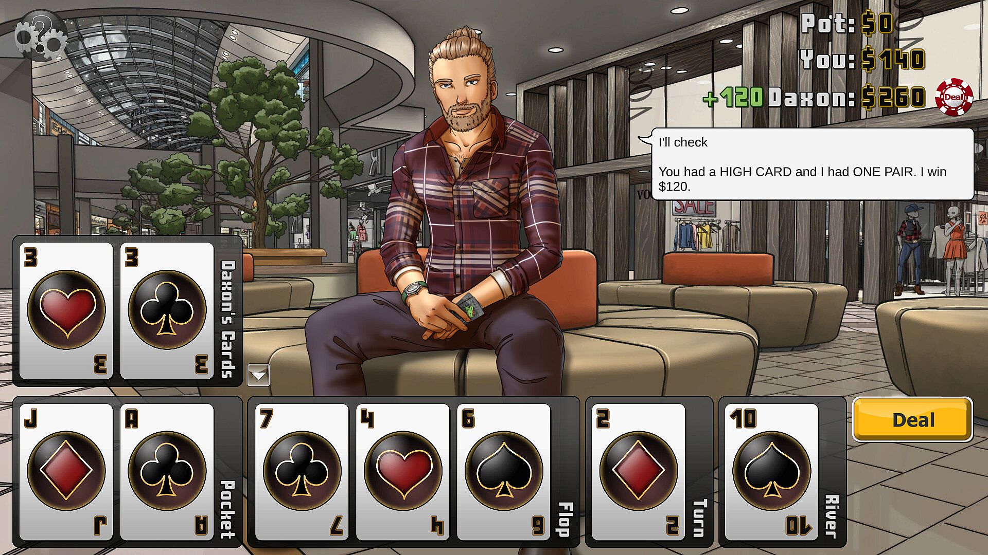 • Partake in a mall-bound evening with heads-up limited Texas Hold 'Em poker at its core