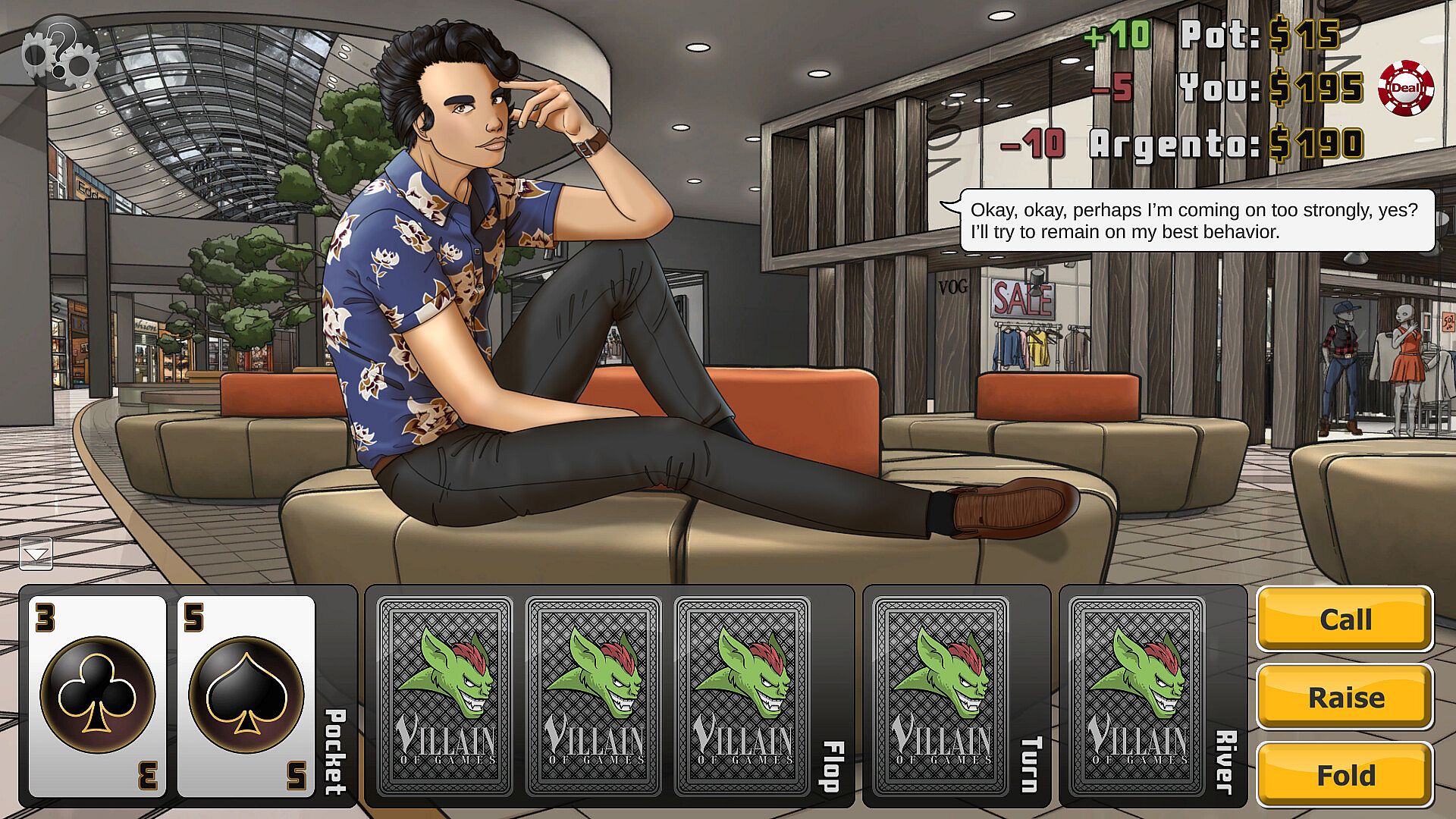 Trapped in a mall, you and your partner turn to Texas hold 'em poker to pass the time. But here's the catch – each victory means your opponent must change outfits from the incredible range of stores around you. Unlock business attire, sports wear, clubbing outfits, swimwear, lingerie, and more as you dive into the intriguing stories and challenges of each character. Will you rise to the top, unlock the most coveted outfits, and leave your fashionable mark in Fashion Holiday?