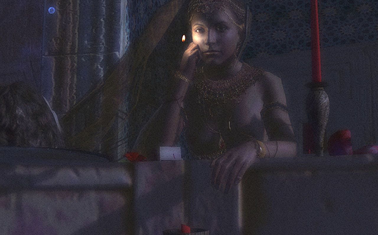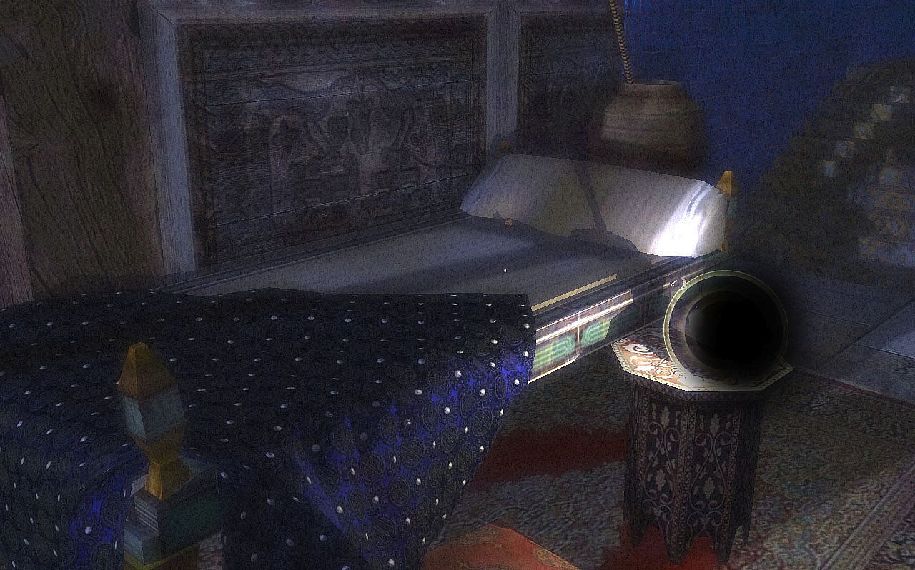 • EXAMINE: The lights on the terrace invite you to hover over them to block them out. From scene to scene, you have various options for interaction. Your cursor keys pan the view, click & drag allows for camera rotation, and sometimes rolling over or clicking items in these scenes can lead to surprising results.