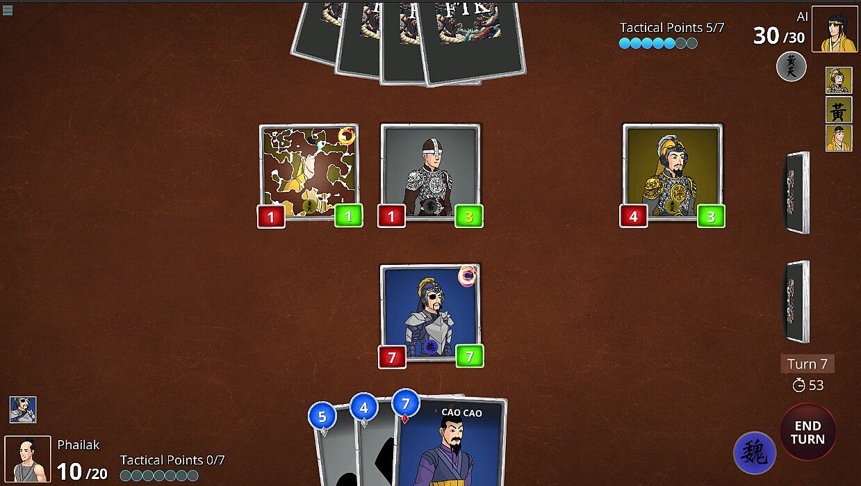Fate of the Three Kingdoms is a turn base card game about the era of the Three Kingdoms.