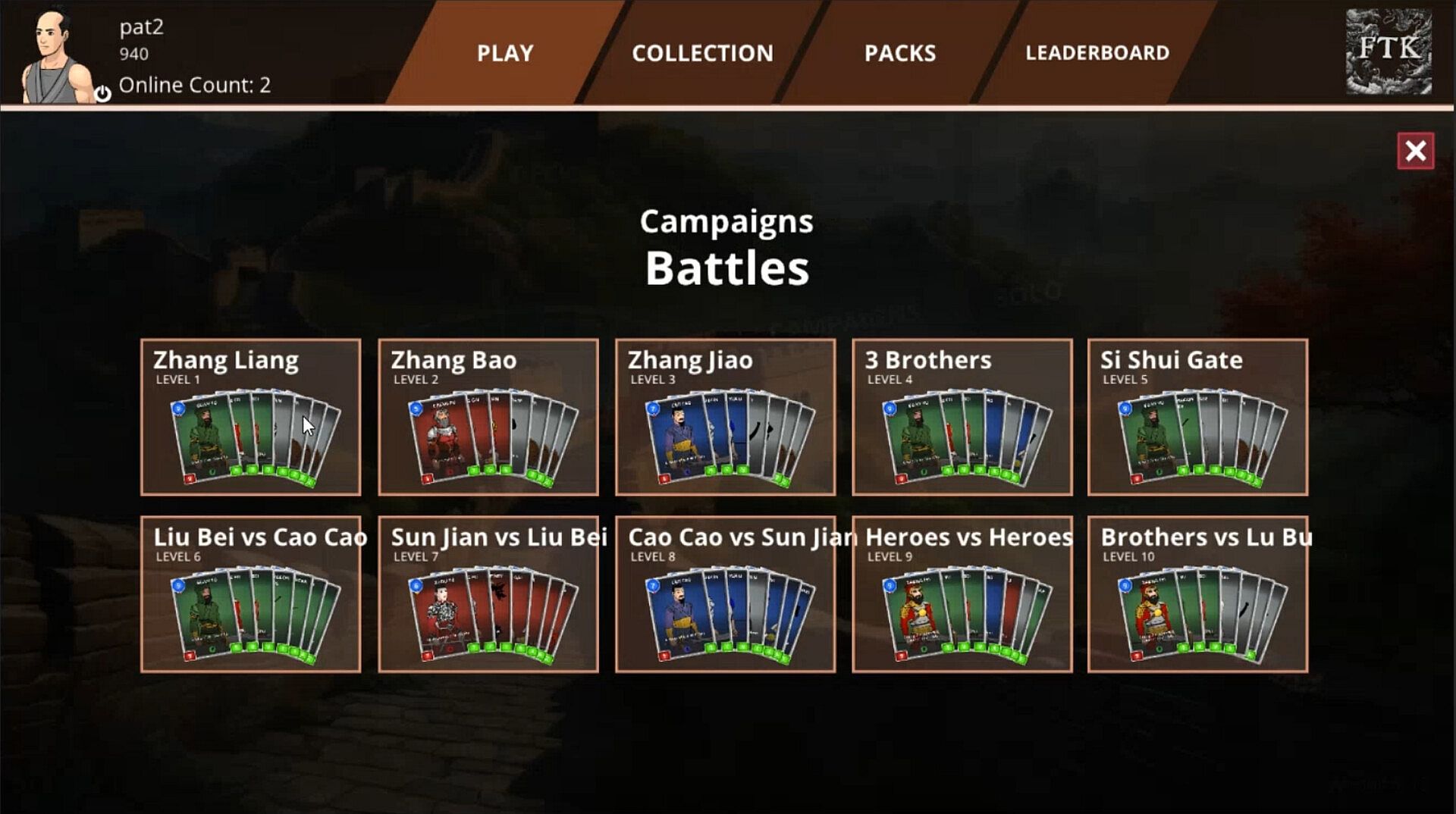 Collect different heroes from the time ranging like Liu Bei, Cao Cao and Sun Jian. Deploy tactics that act as spells in traditional card games. Equip legendary weapons and horses or lay traps like Ambush or Empty City.