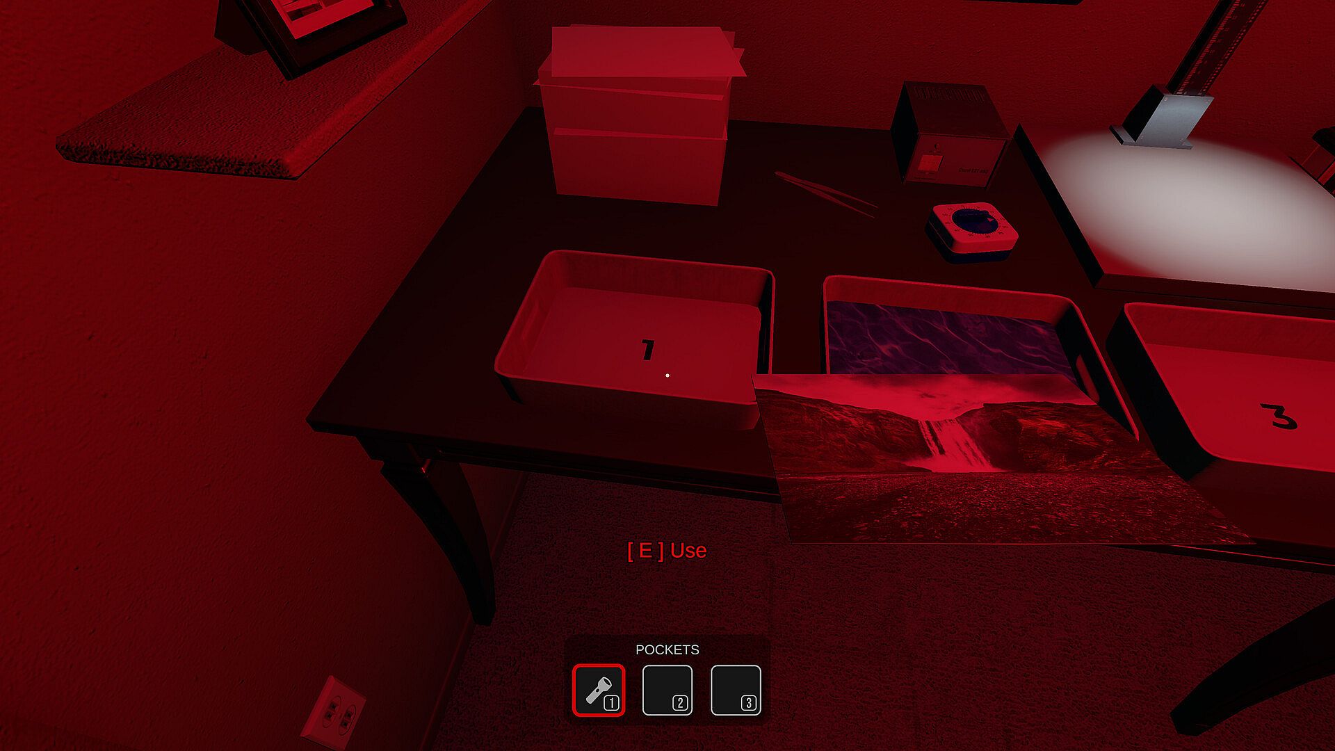 • Realistic darkroom photo printing – a detailed, hands-on process where every step and every sound heightens the tension.