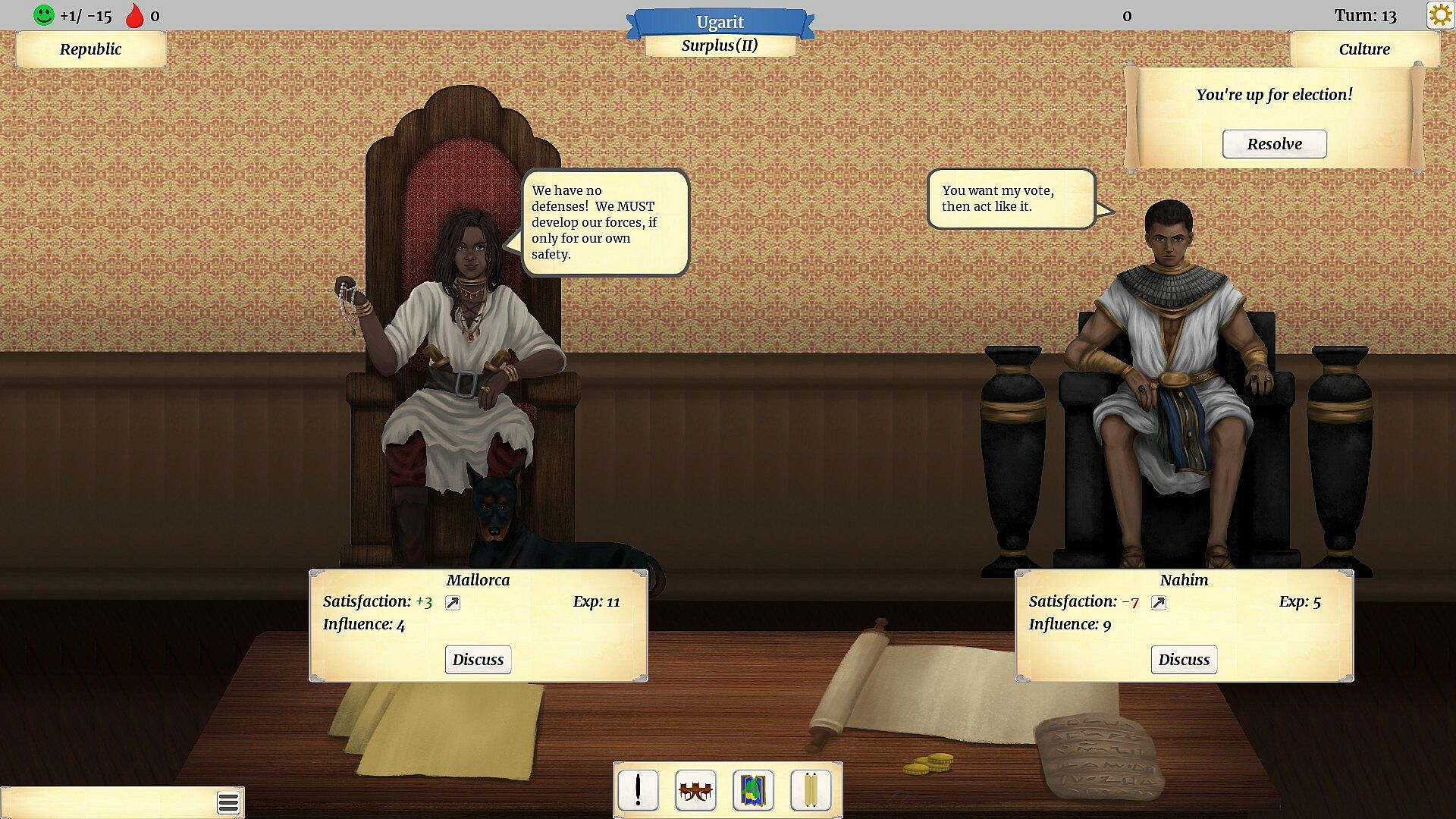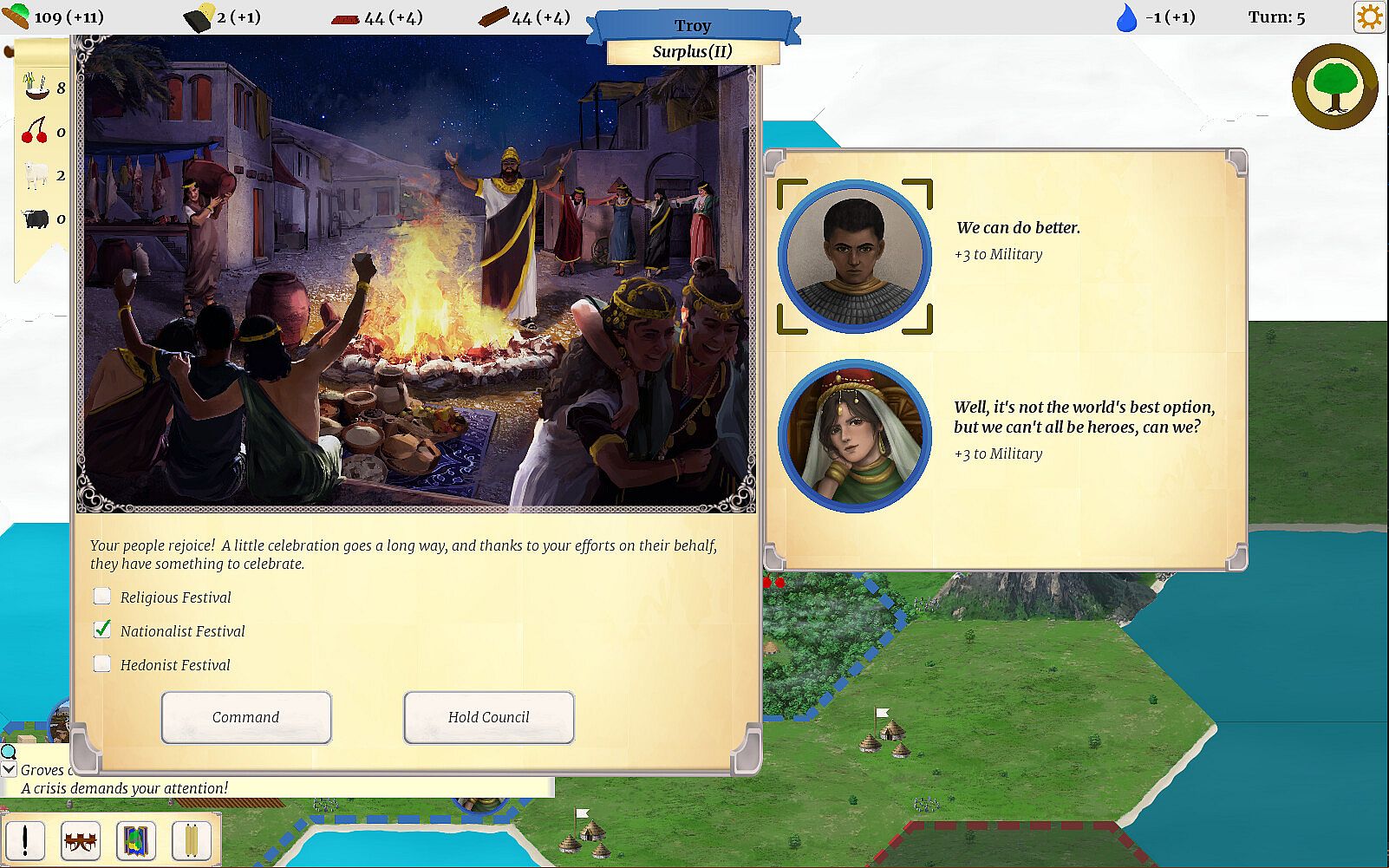 • Compete with petty, selfish neighbors - or find a way to cooperate. Send delegations to negotiate, for everything from food donations to study abroad programs.
