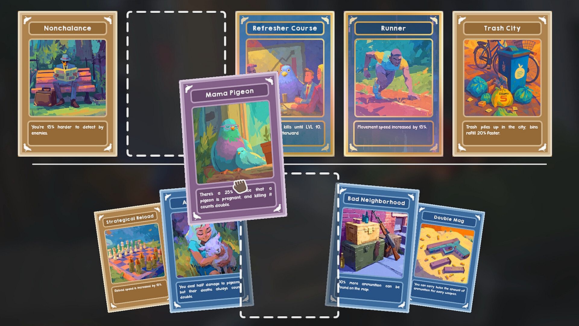 Find and stack perks that modify core mechanics, creating absurd builds: