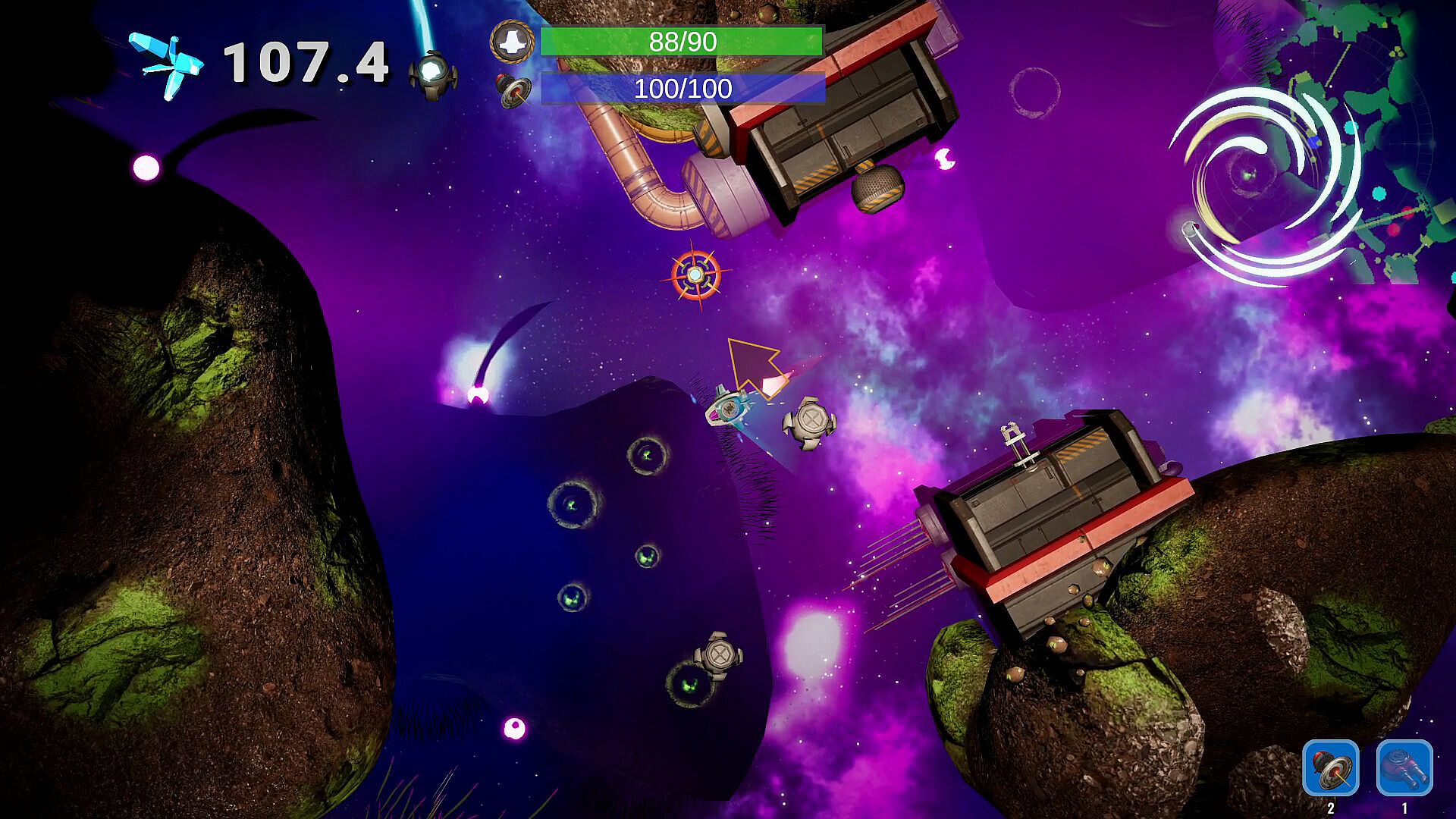 Collect hull upgrades and new weapons along the way.