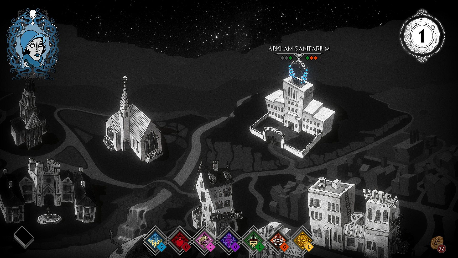 - You can visit 1 location per round and attempt the Lovecraftian stories at that location, to improve your stats.