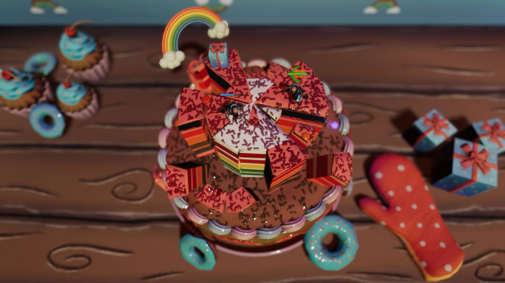 Slap, push, zap, and freeze opponents in rapid multiplayer battles supporting up to four players. Unique arenas shatter under combat, letting you hammer pieces to drop foes-or yourself-into the void. Dash with everyone, grab 10 power-ups, and draft heroes from random abilities in modes like classic, frenzy, deathmatch, and random. Casual indie action shines in Ability Draft and frenzy, where spells swap randomly on use, or deathmatch's nonstop 10-minute takedown rush. Arenas feature special twists, like dragon transformations or mystery gifts. Pick-up-and-play controls need just four buttons and one stick, with broad controller support on PC plus Remote Play Together-ideal for parties, siblings, or friends jumping in anytime.