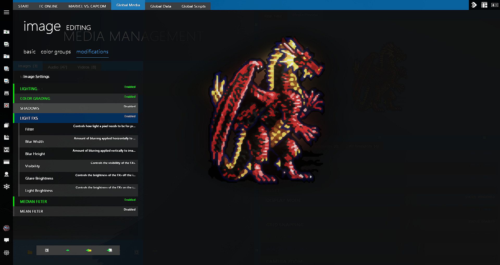 Fighter Creator also doesn't have any built-in game systems like character attributes, damage and attacks systems, etc. Because all of these system can be built from scratch to work exactly the way you want and be shared with other users, encouraging new concepts, creativity, and community interactions.