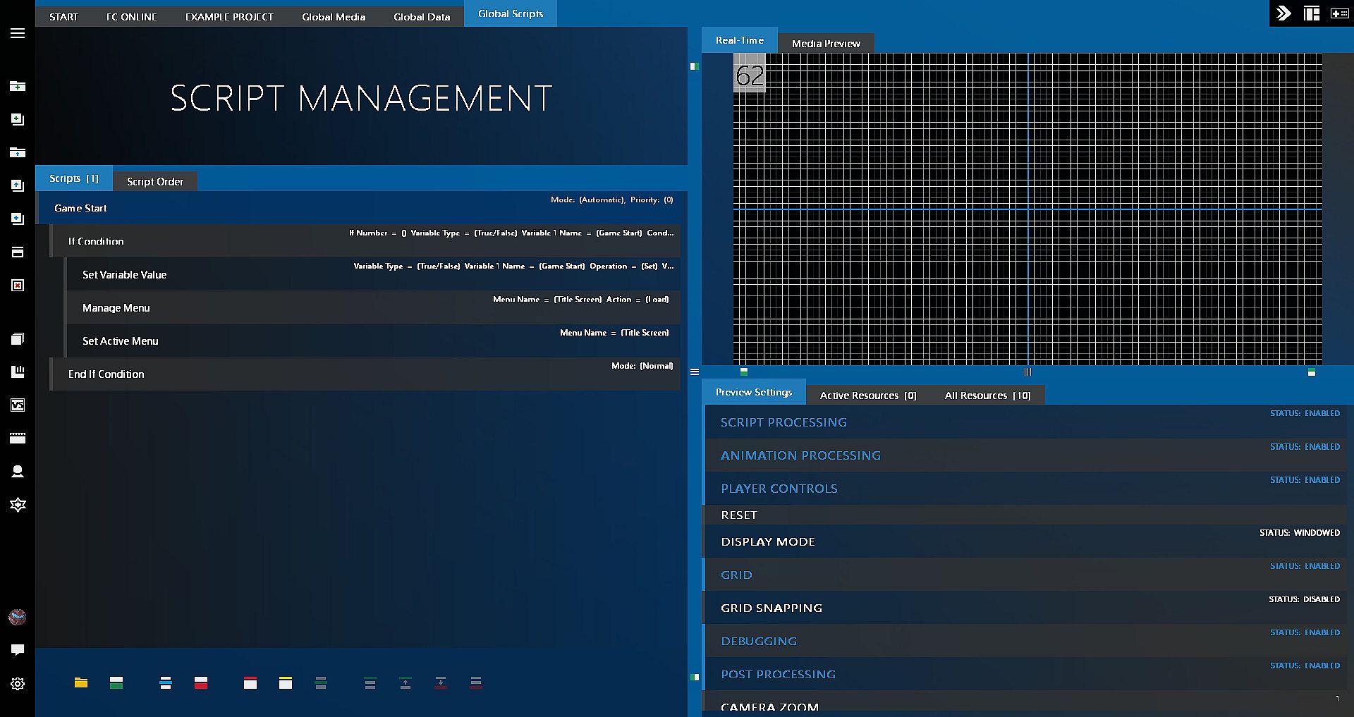The script creation process has been completely redone, allowing you to type in the functions instead of having to click through menus, significantly cutting down the time it takes to program your game.