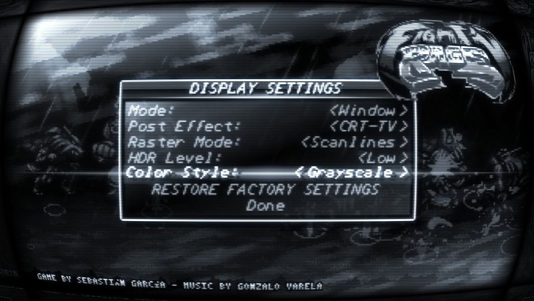 All the game (graphics, design and programing) was created by Sebastián GarcĂa, while the full OST (composed of more than 40 great tracks!) was created by Gonzalo Varela.