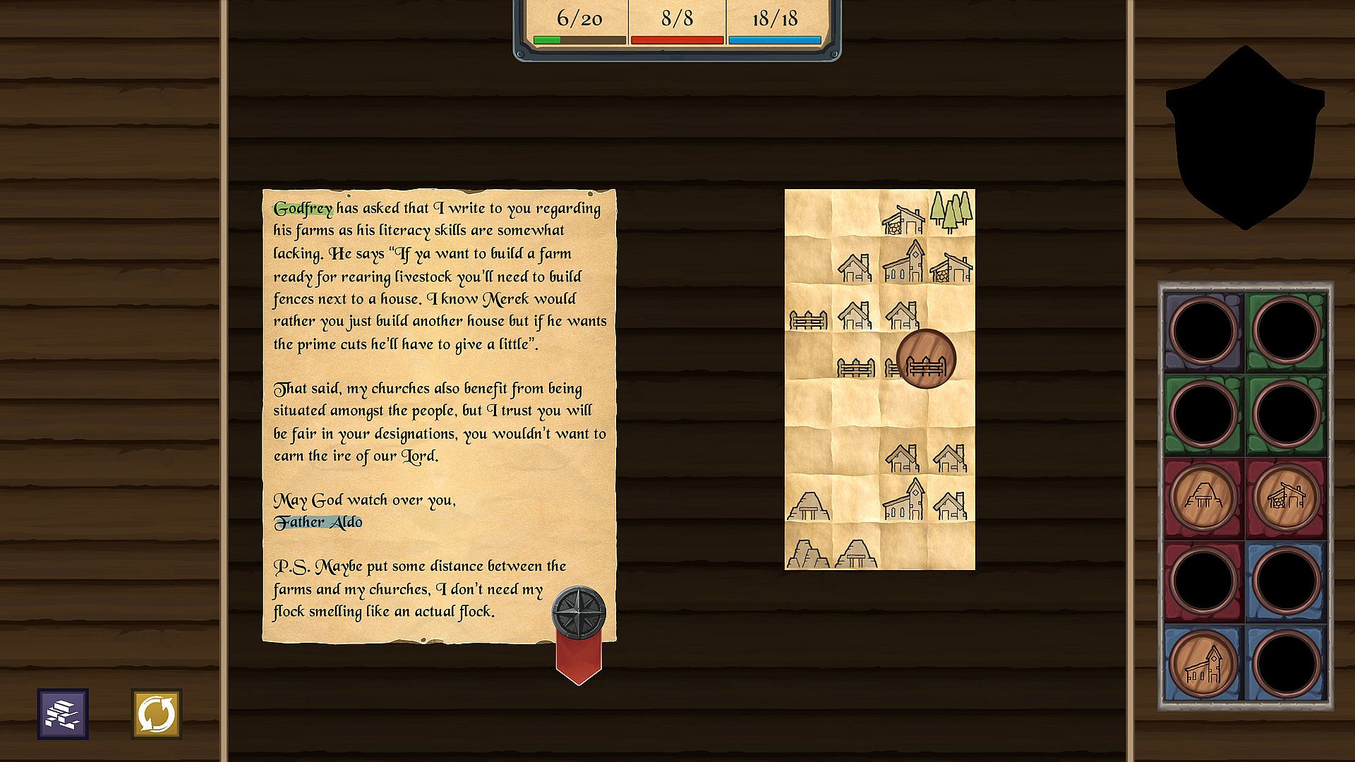 As the new Royal Planner, it is your job to satisfy the needs of the kingdom through clever placement of buildings and land. Each building will generate a resource according to what surrounds it, be it natural or manmade.