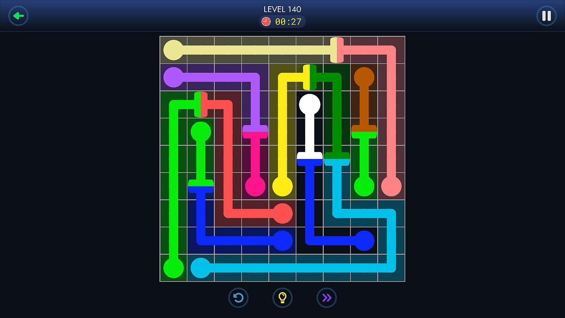 This game offers a new mechanic in dots connect games. The goal is to connect dots by pairs, until the entire board is filled with beautiful color lines, but there are items that will change the initial color, made this game very fun and a real challenge. The challenge increases gradually with harder levels & new twists like bridges between the flow.