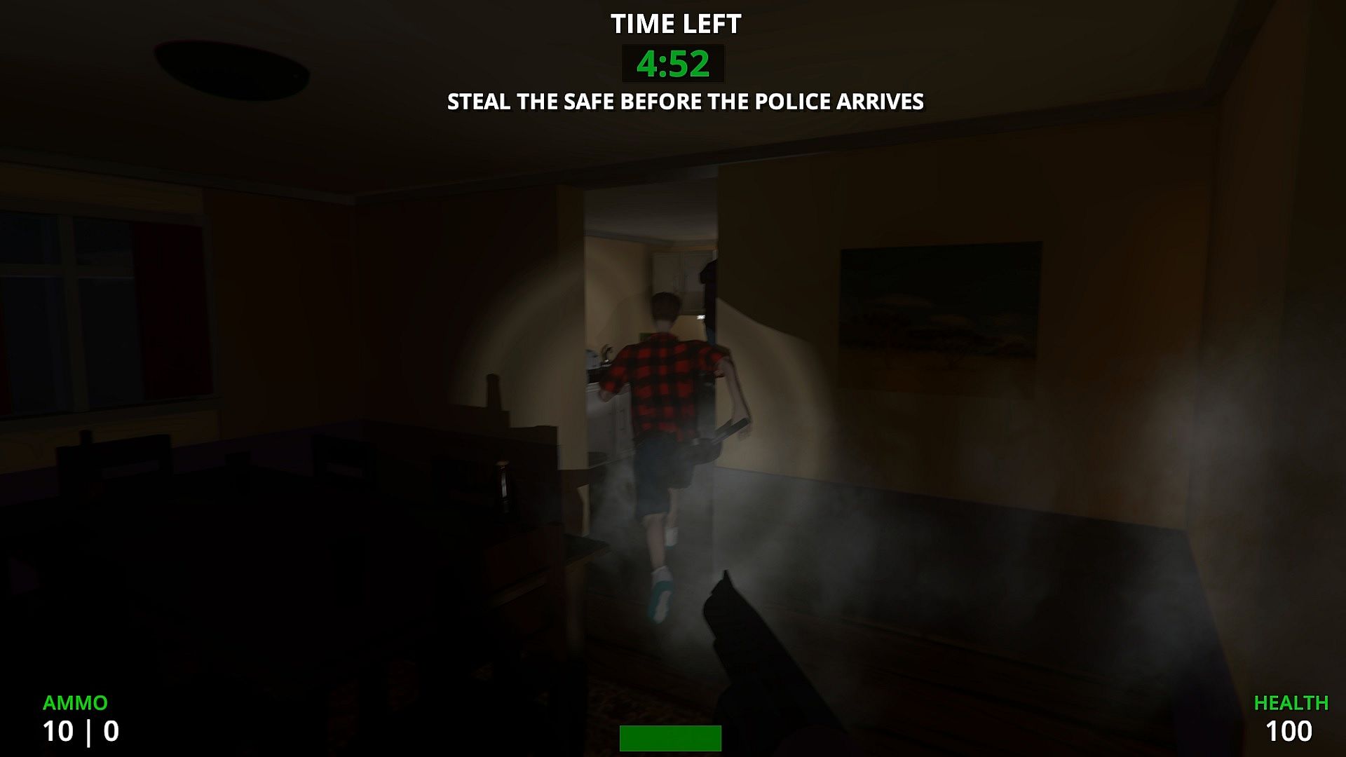 Play as a one man team starring a robber who attempts to steal his biggest jackpot yet. Be sneaky or be courageous in order to steal the safe before the police arrives. Do you have what it takes to outsmart or eliminate an entire family who would do anything to defend their belongings?