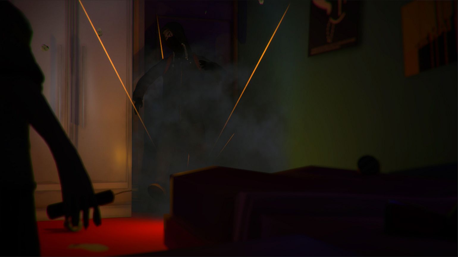 In a quiet suburb where nothing usually happens, the unexpected strikes: an armed robbery. Filthy Hands is a 2-4 person multiplayer game featuring two diverse maps wherein you either defend your house as a family of 3, or attack the house as a brutal robber.