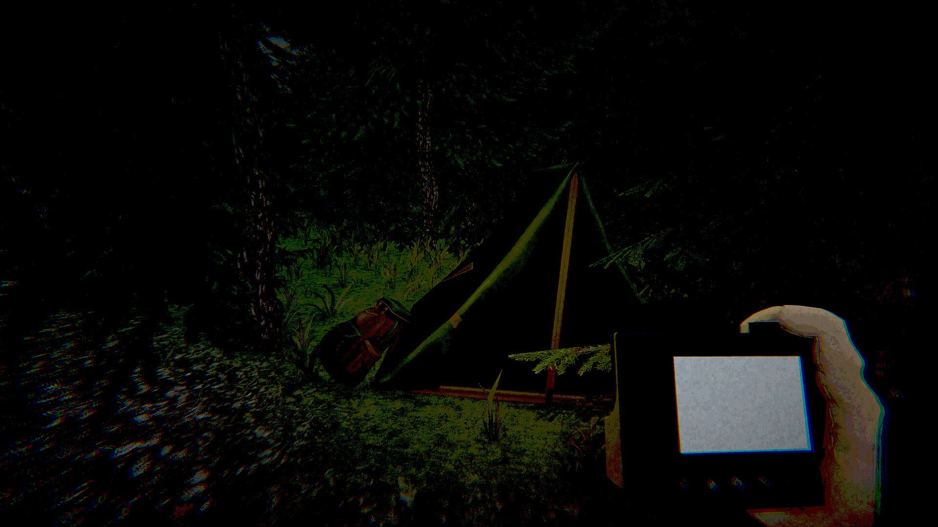 You are equipped with a flashlight, a photo camera and a high-tech objective-finding device known as S.E.R.A (Spectral Emission Recognition Apparatus) — capable of detecting nearby objects with fingerprints or fresh blood.