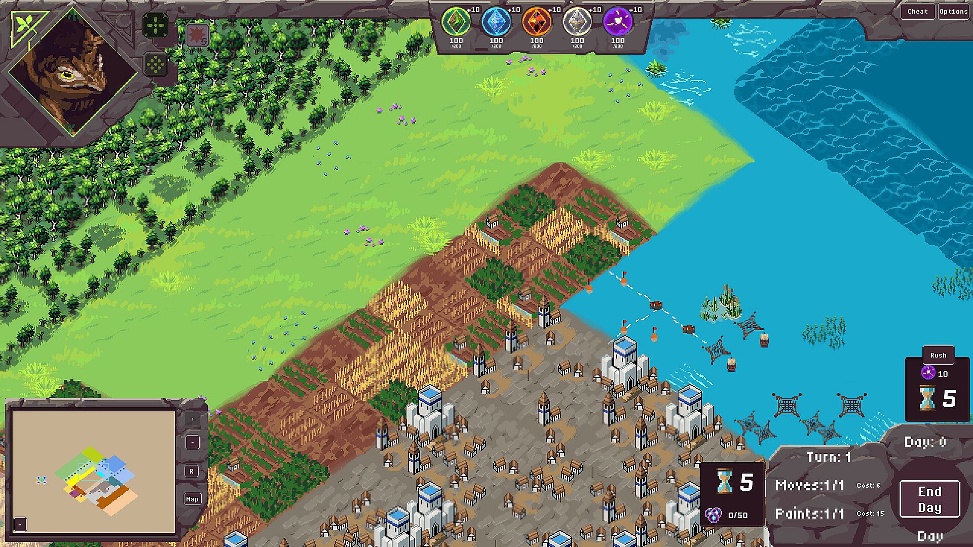 Chess-inspired movement and spell system, which turns terraforming and fights into a turn-based puzzle