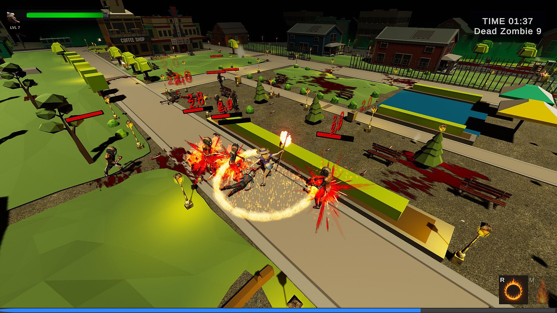 Master of Flames: Obliterate zombie swarms using Meteor, Fire Ring, and Ignite abilities available in the demo.