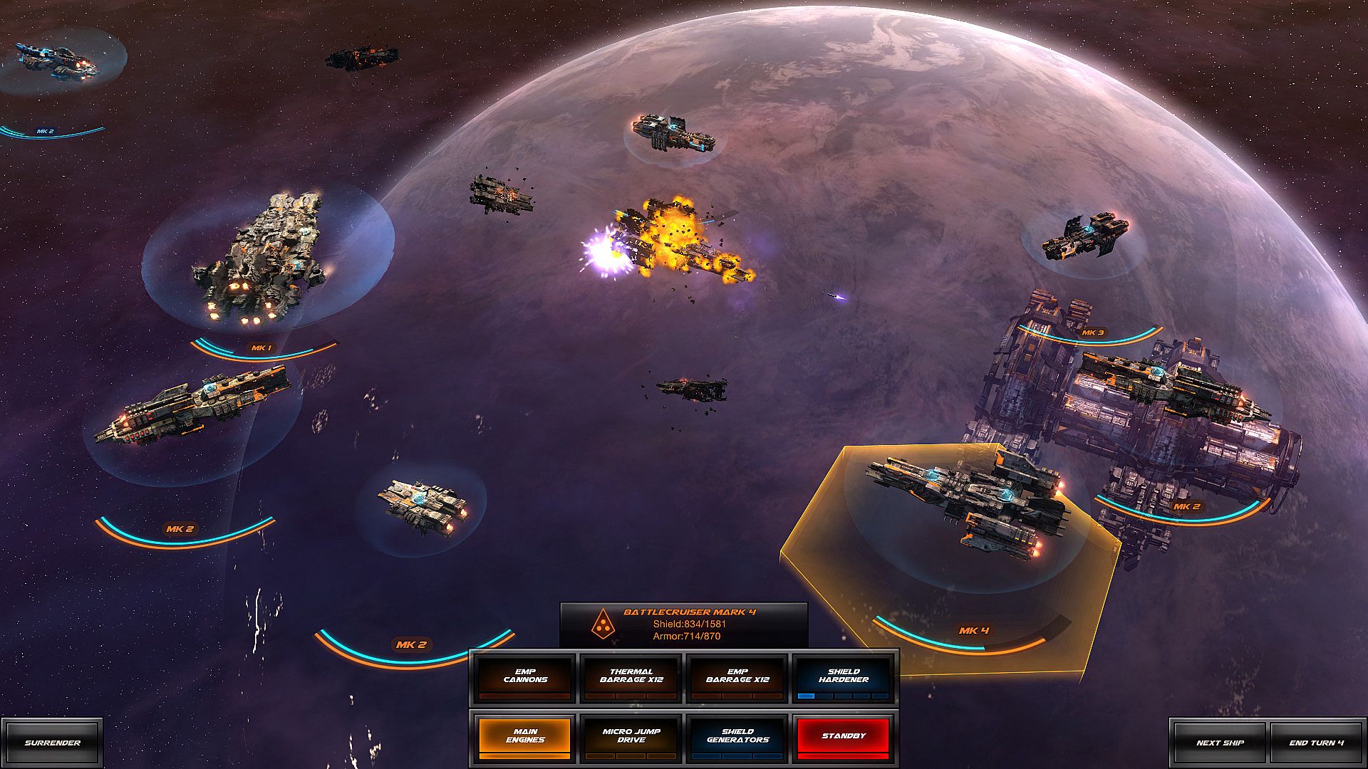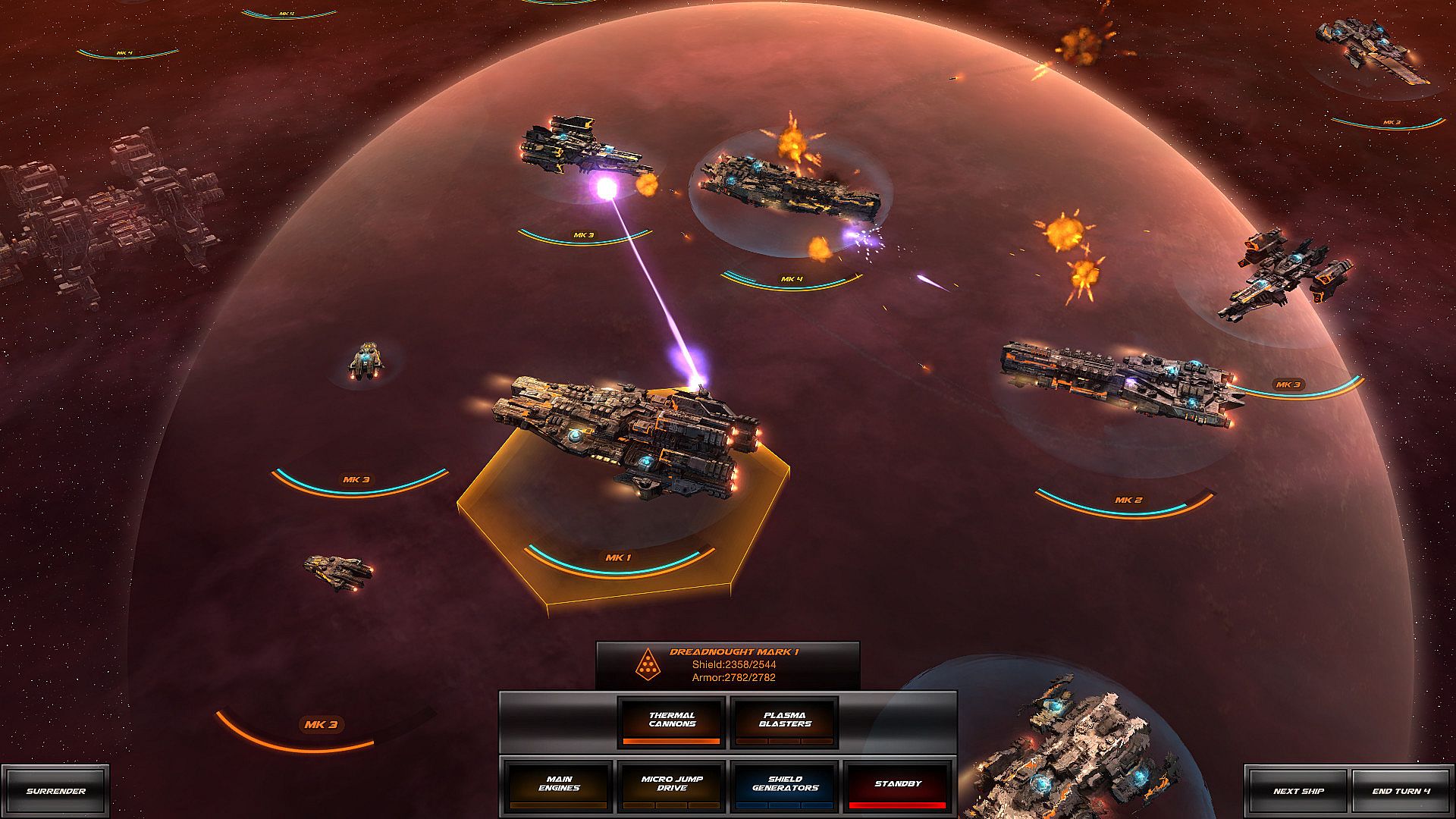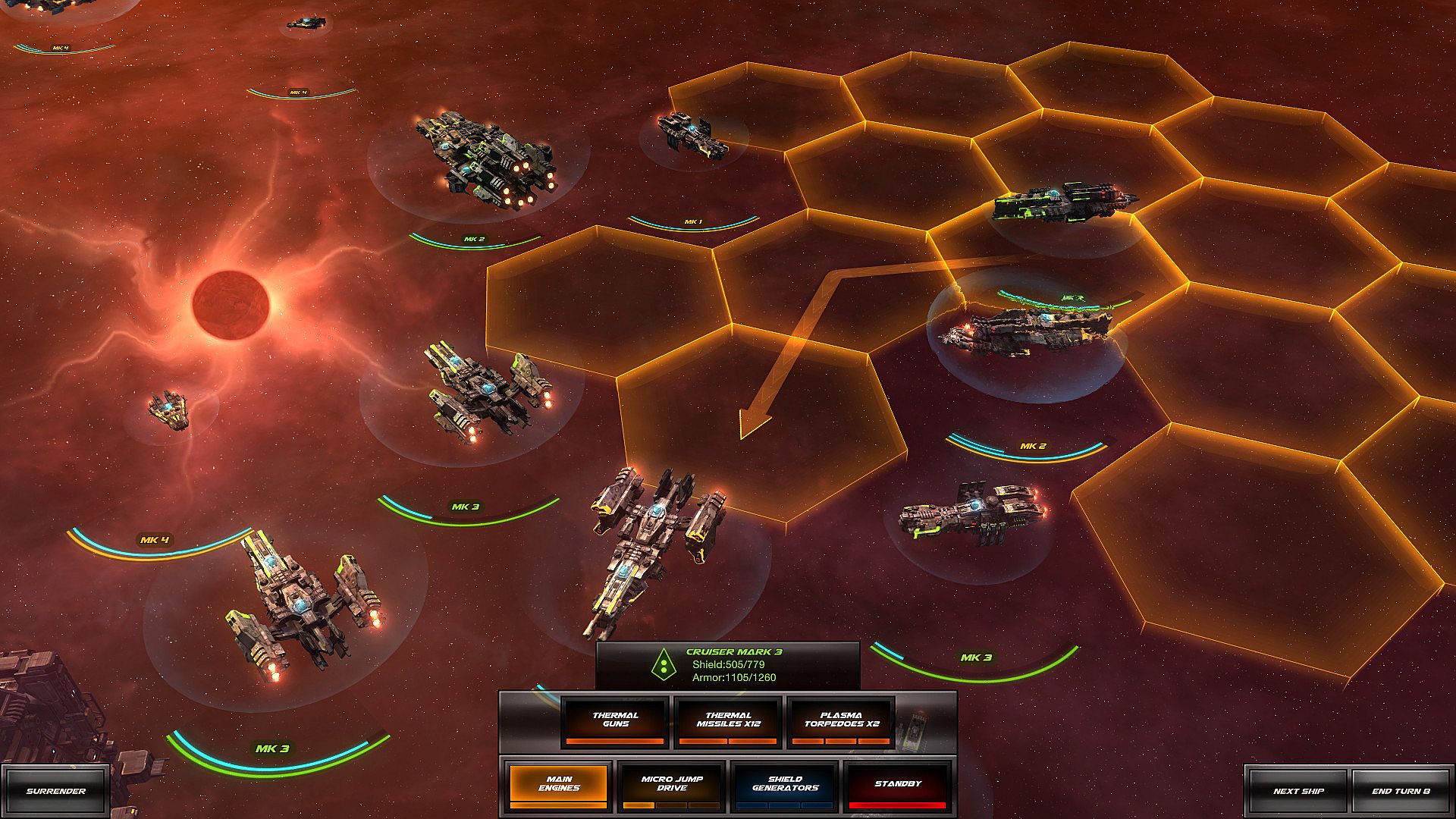 Mix ships to gain synergy. Use powerful weapons, tactics, positioning and line of sight to win.Hex Grid Movement, 100% Turn-Based